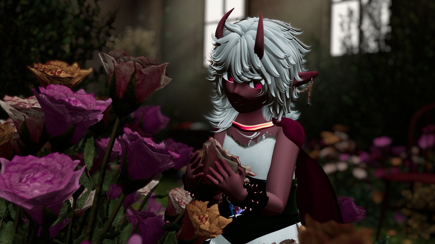 (Top, Corset, Waist Straps, Skull, Cape, Shorts, Leg Belt, Socks, Shoes, Wrist Sleeves, Chains, Earrings, Horns, & Tail were all made from scratch by me along with their textures. She also has custom icons I drew~)