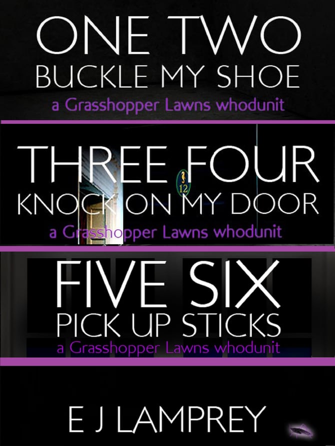 The box-set for the first three boxes in the Grasshopper Lawns series of whodunits, at a bargain box-set price