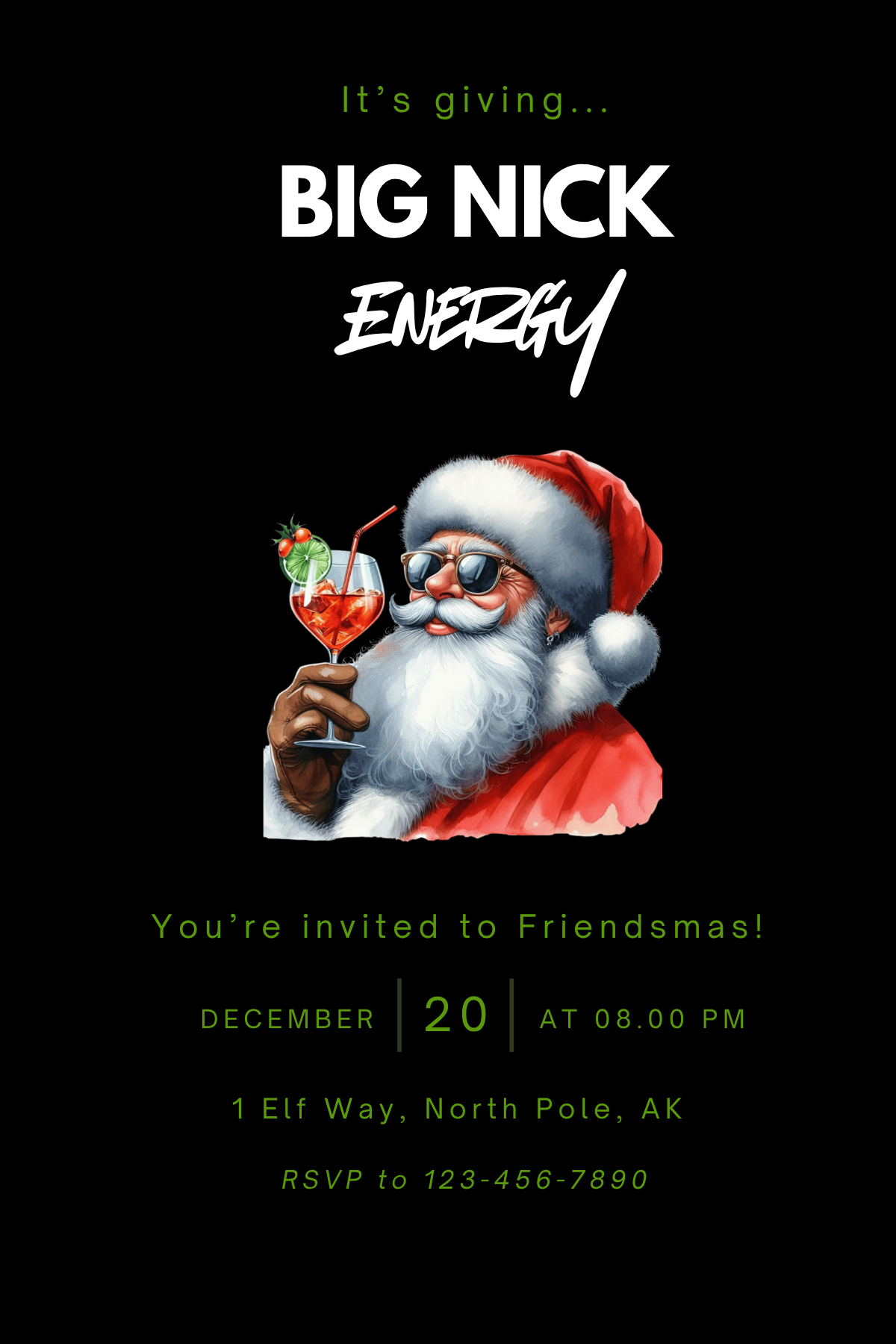 Get ready to sleigh, babes โ because this Big Nick Energy Friendsmas Digital Invite is not your average holiday party announcement. Whether youโre hosting a festive girlsโ night, a cozy cocktail soirรฉe, or a cheeky Friendsmas pajama party, this editable digital invitation sets the tone for a night full of laughter, sparkle, and a little naughty fun. ๐