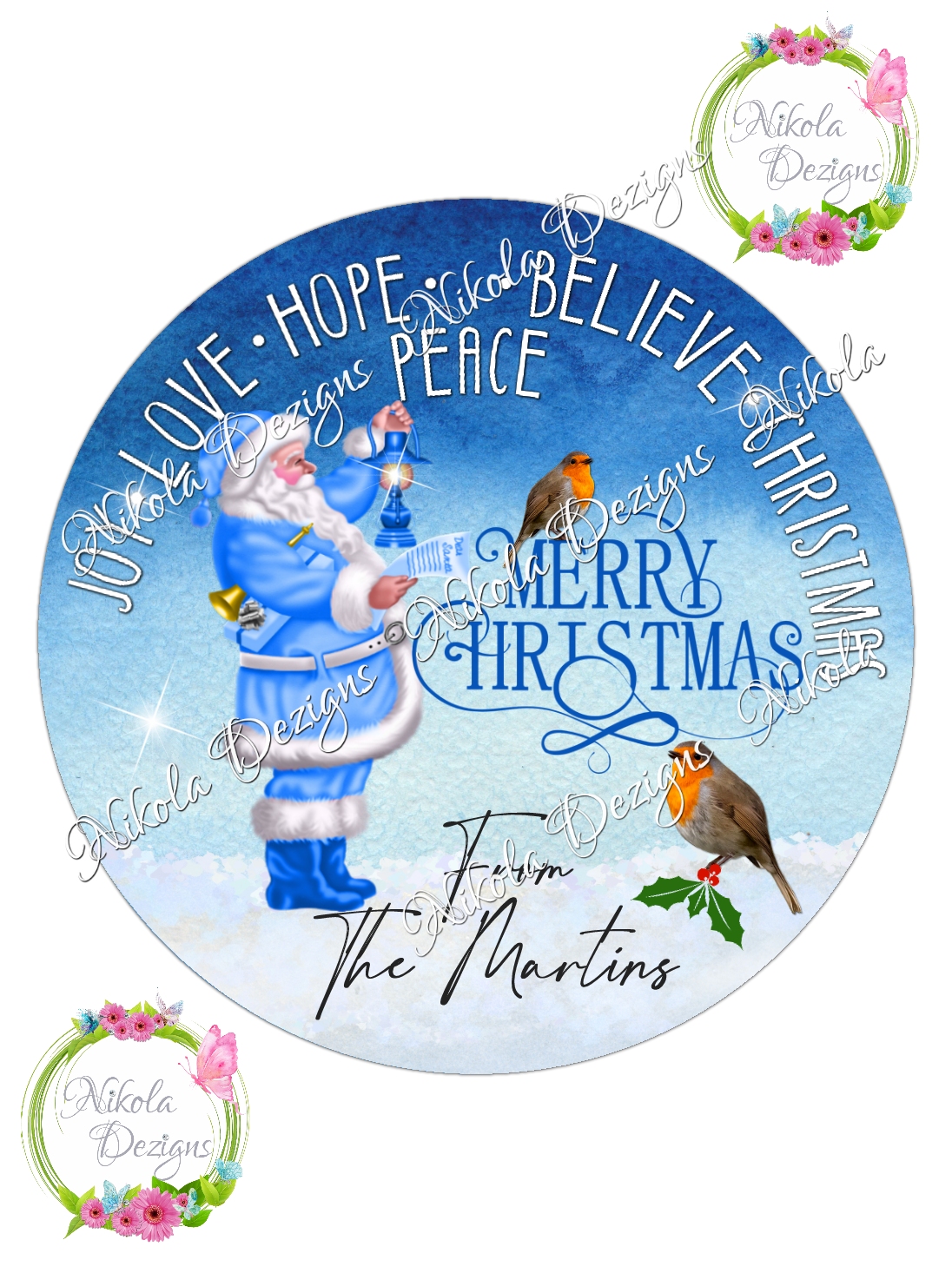 Cute Blue Santa, Robins and Merry Christmas design. It is 8.7cm, so fits perfect on 8.5cm MDF glitter baubles. It is designed at 300dpi, and is in PNG & JPG format. This is a digital download only, and there is no physical item. You can create and sell as many of these as you like, but ONLY when printed onto a physical product.