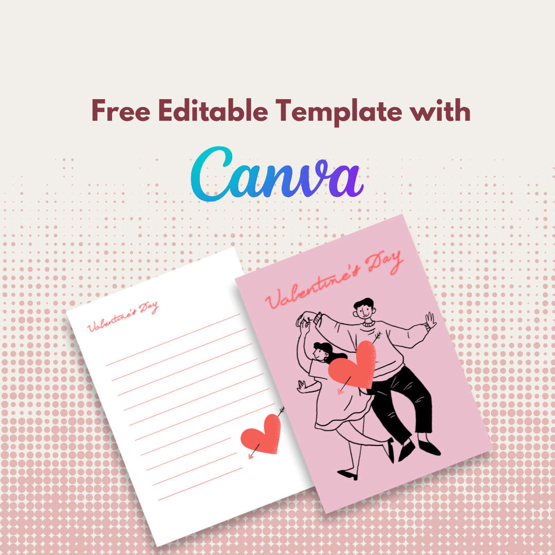 Featuring a hand-drawn cartoon couple dancing with a heart and arrow design, this Valentine's Day stationery set is perfect for celebrating love on February 14th, 2025. The editable and printable Canva template is designed for quick customization, making it ideal for romantic notes, letters, or invitations.