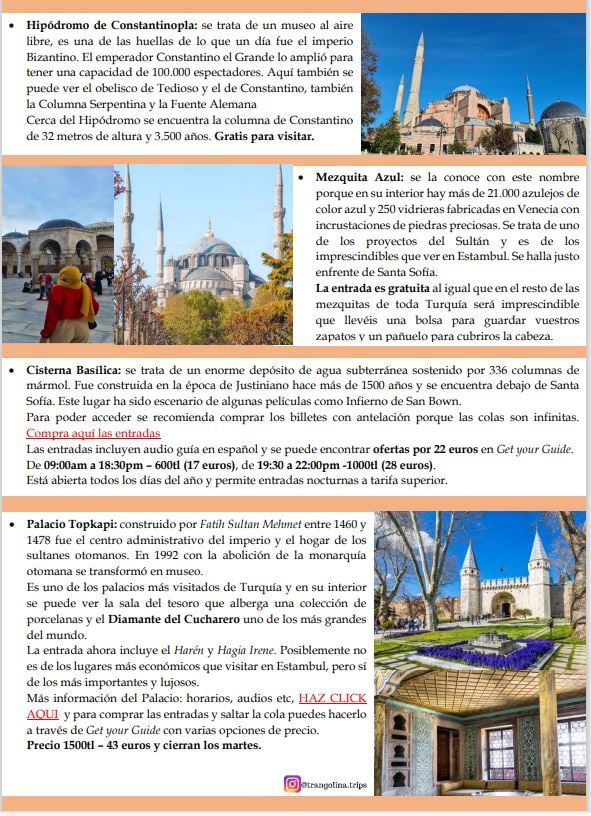 En 16 páginas te dejamos toda la información para que tu viaje a Estambul sea de la más fácil posible, encontrarás información sobre: