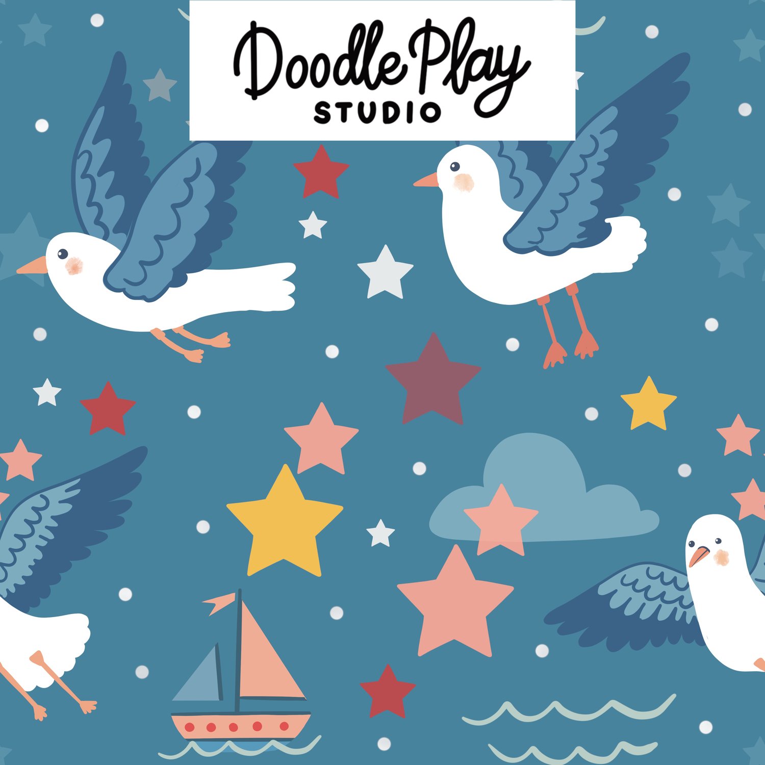 Sea Patrol - Non-Exclusive Digital Pattern for all your projects. This set of three patterns of the same design of varying scale (with protective watermark removed) are ready for you to instantly download and either print yourself or send to a print shop.