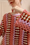 The Taylor Twist Dress is worked flat in pieces. First we work the front sideways and then the back piece. Next we make two mirrored sleeves. All the pieces are seamed together after which we crochet a scalloped edge around the sleeve cuffs. Lasly we finish the neckline with either a knitted I-cord or crochet.
