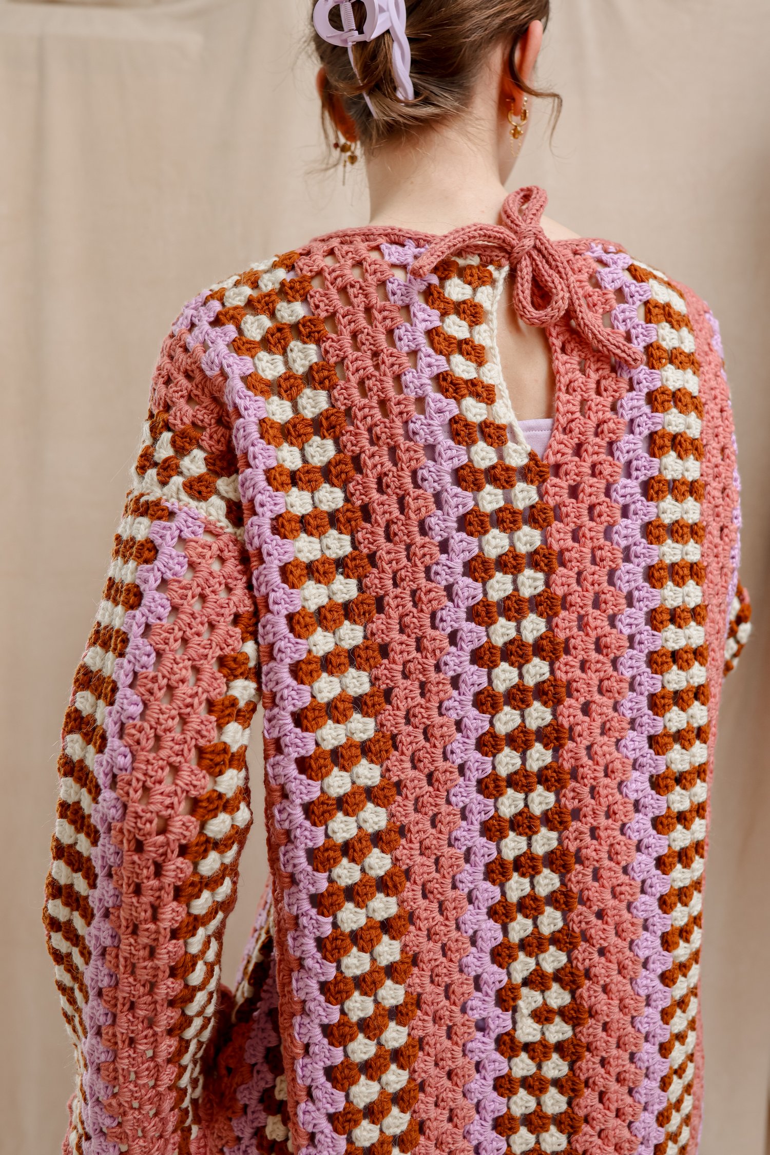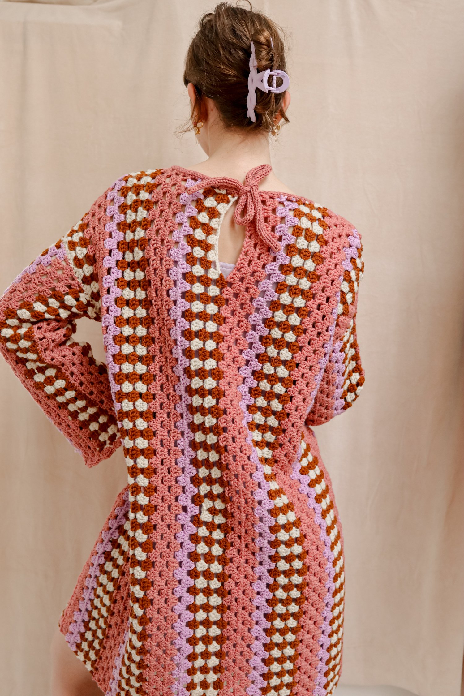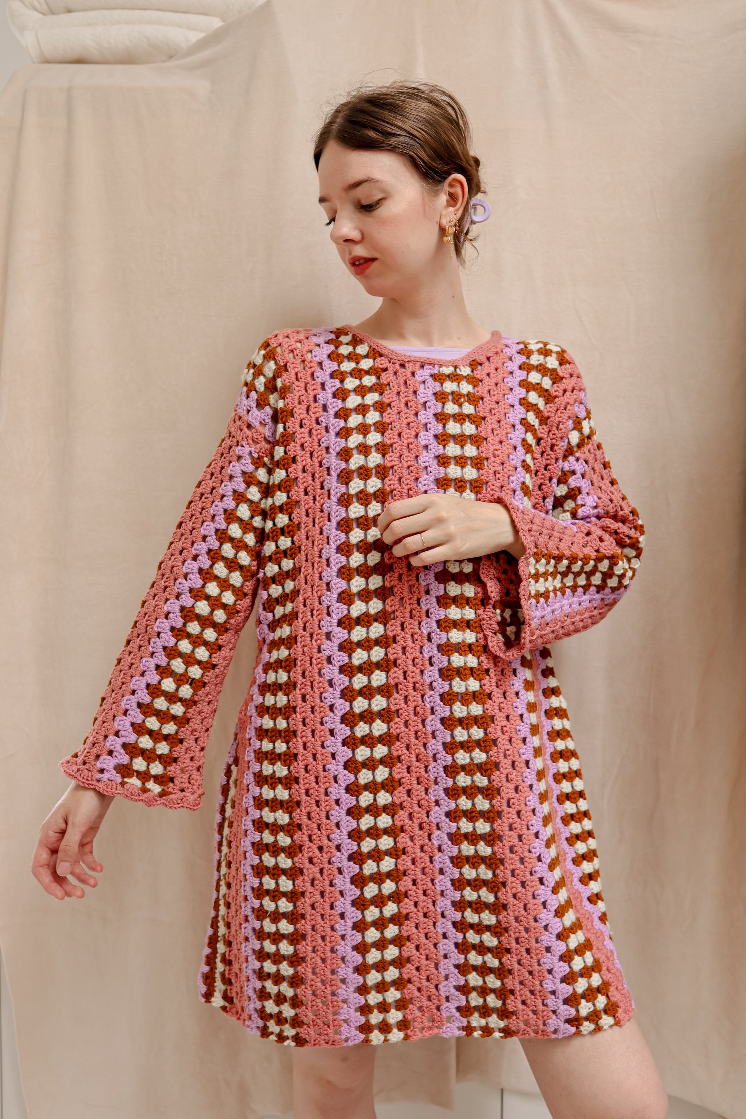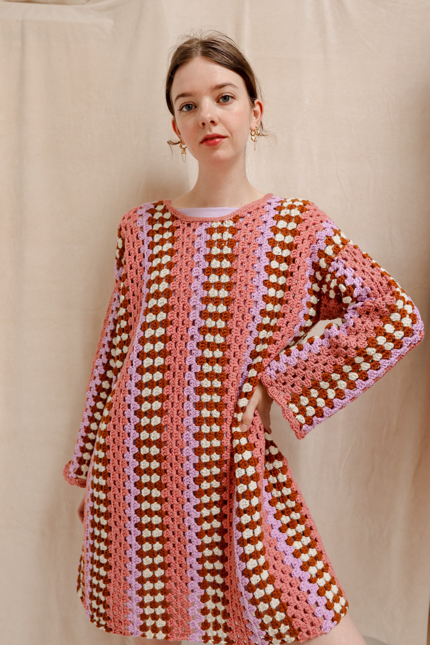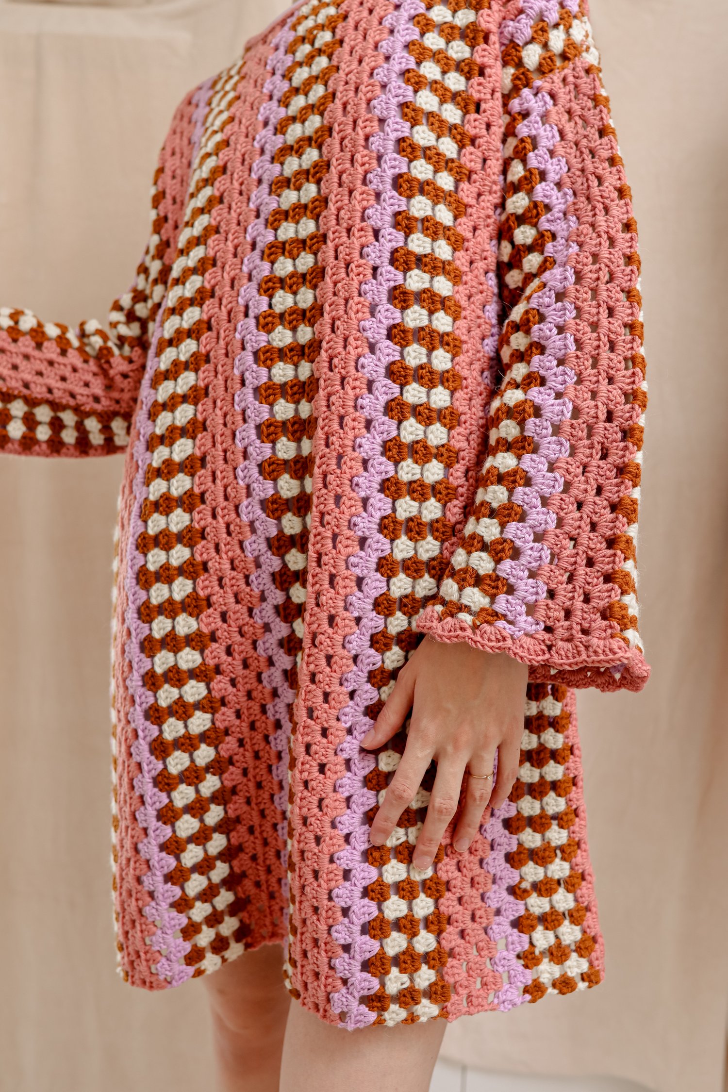 The Taylor Twist Dress is inspired by Taylor Swift her crochet dress, which was clearly inspired by the 70s. I decided to give my own spin (or shall I say twist?) to the dress with a flared body, shoulder shaping and with key-hole back for easy wear.