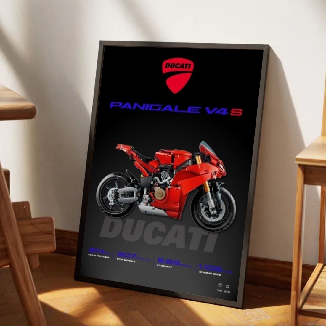 ✘ Idéal pour exposer la moto LEGO Technic : place ton modèle directement devant l’affiche pour un rendu réaliste et dynamique.