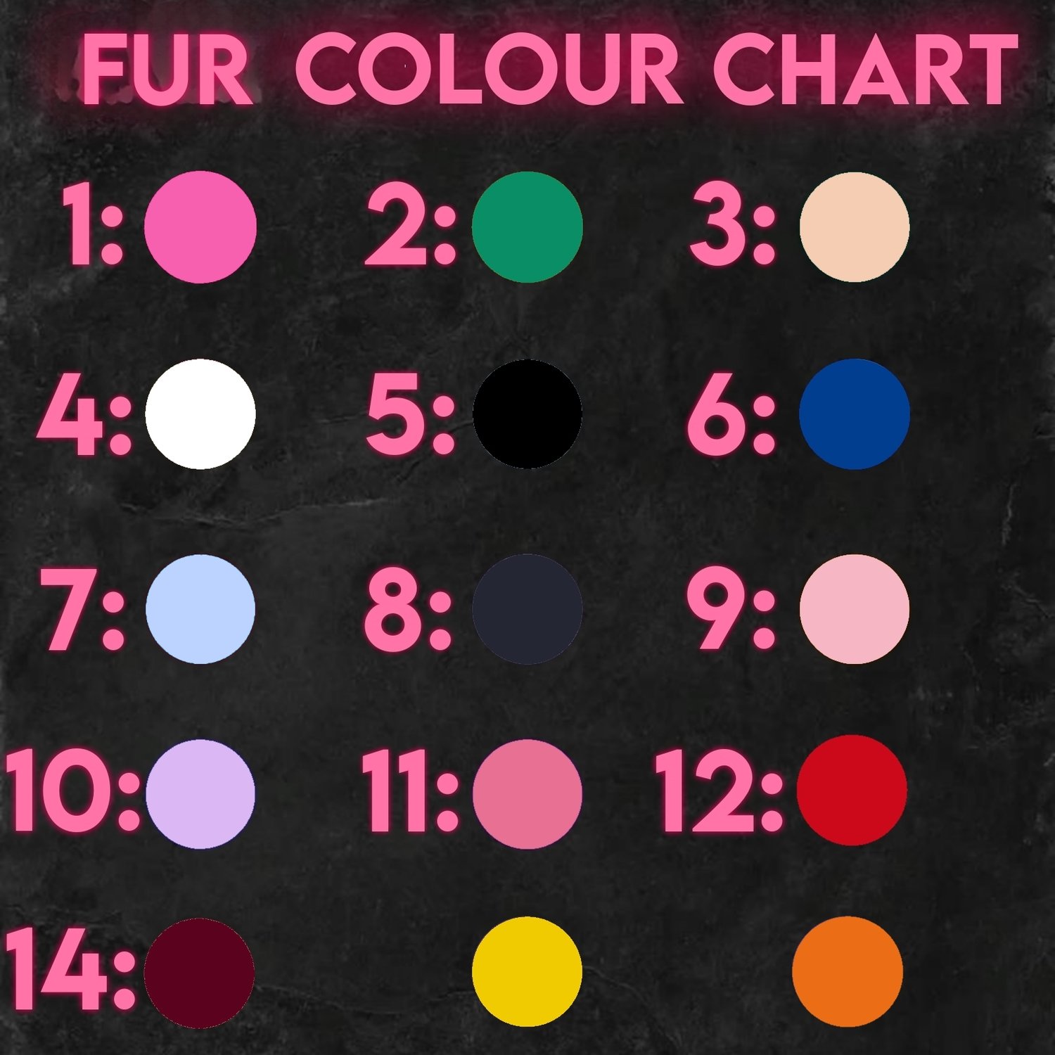 - At checkout, enter the number of the fur colour you want in the notes box.