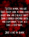 Just a Bit of Havoc is book one in the Havoc series, a dark monster paranormal romance with a little vigilante demon. For fans of unhinged female main characters, reverse harems, fated mates, demons and angels, morally grey characters, dark humor and gore.