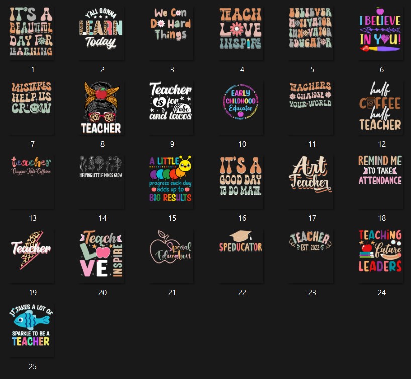 This is a bundle of 150 designs in with 25 designs in each of the following niches:
