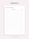 New Book Releases Tracker, Printable & Fillable Template, A4/Letter Size