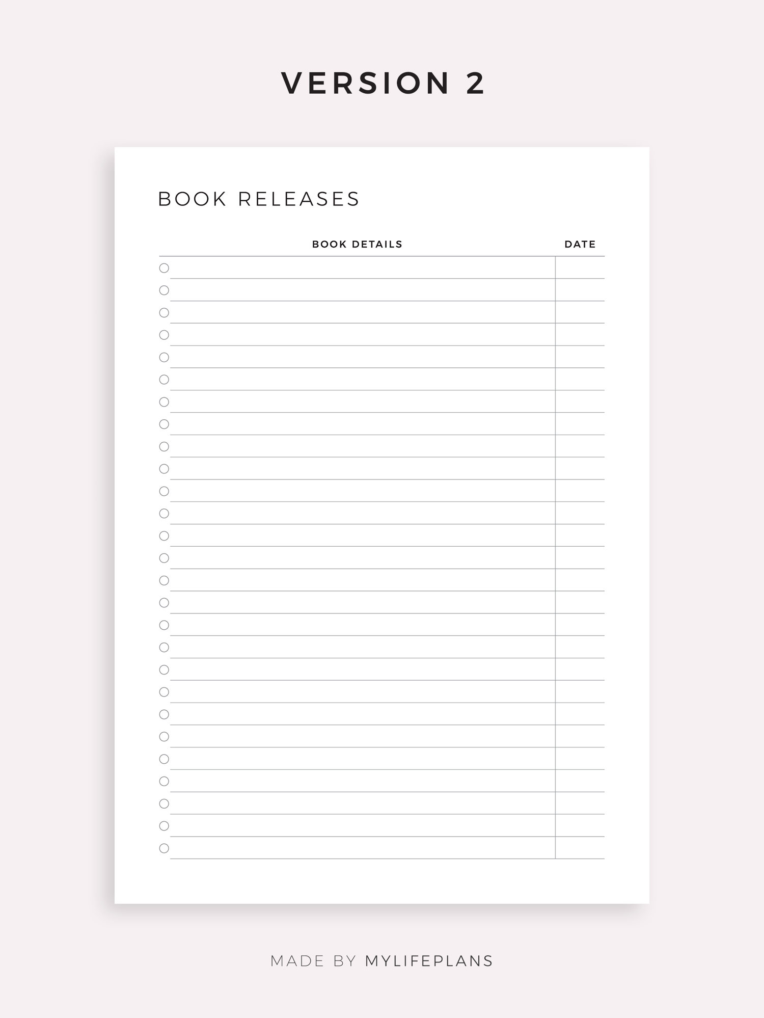 This is a printable new book releases tracker — just download, print, and start using it right away.