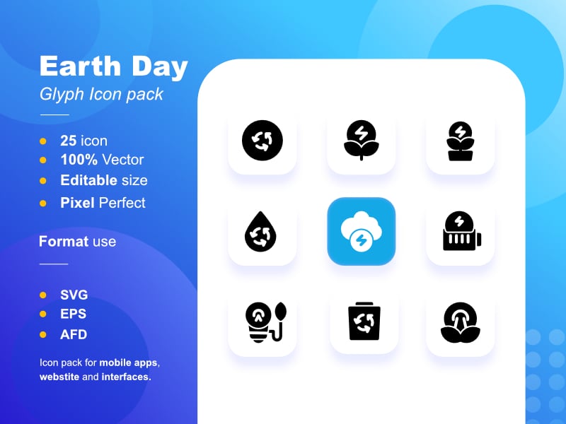 Earth day glyph icon pack comprises 25 stylish icons.