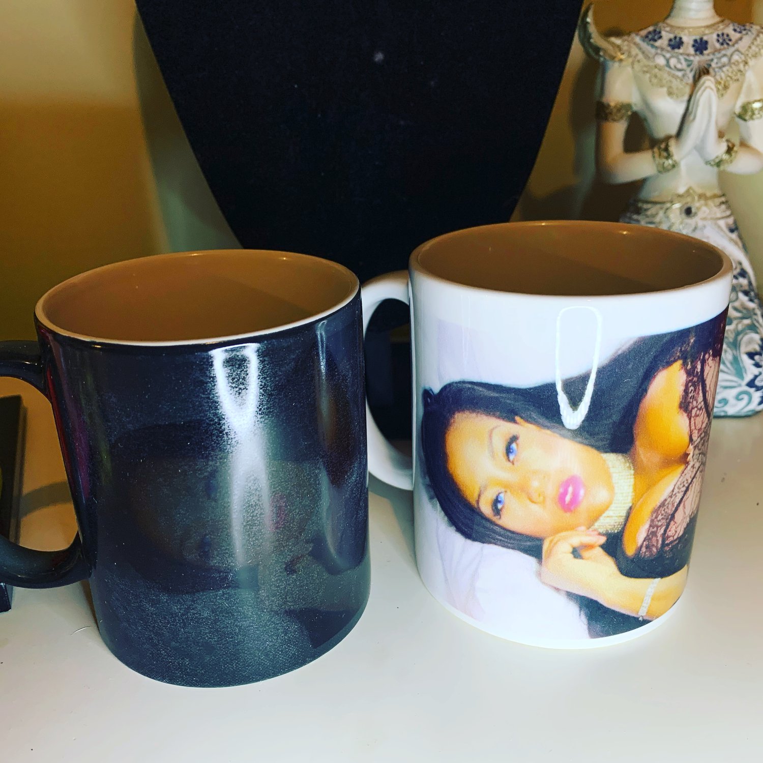 Goddess Mug that changes from black to show the photo when heat it added. Just add hot water
