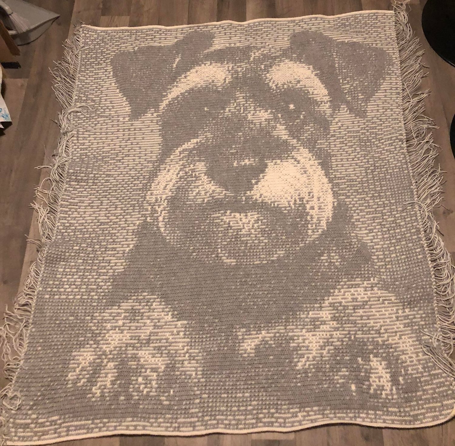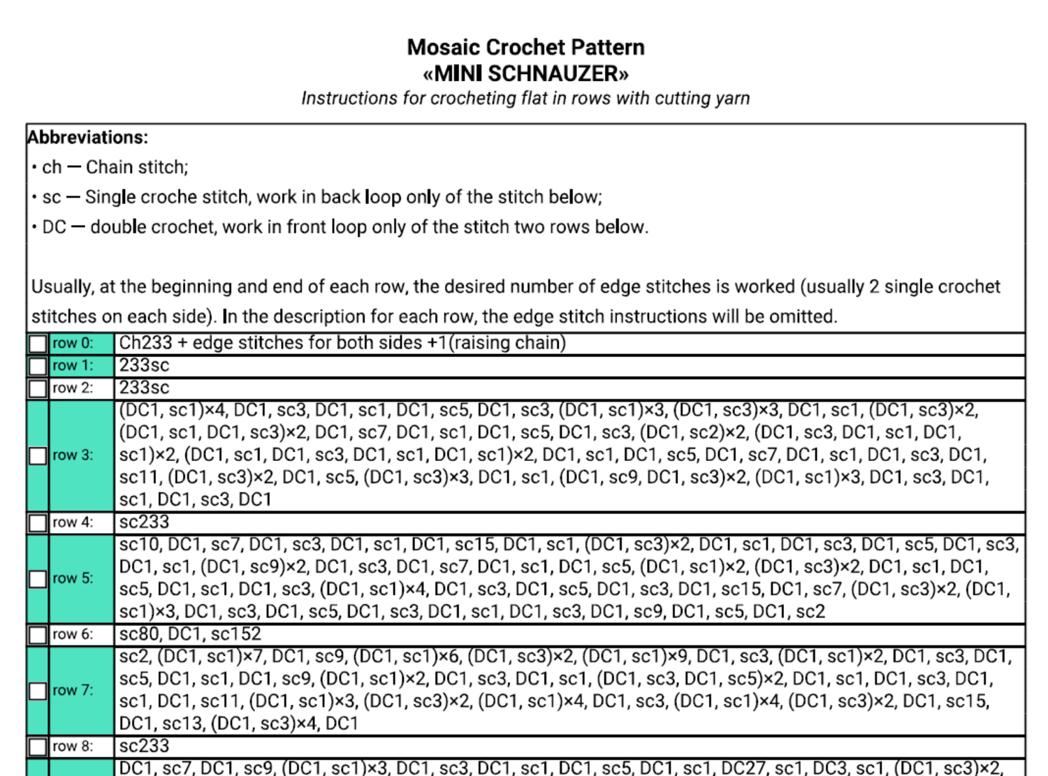 Overlay Mosaic Crochet, MINI SHCNAUZER, written pattern row by row, Big Chart Xs, PDF instant download