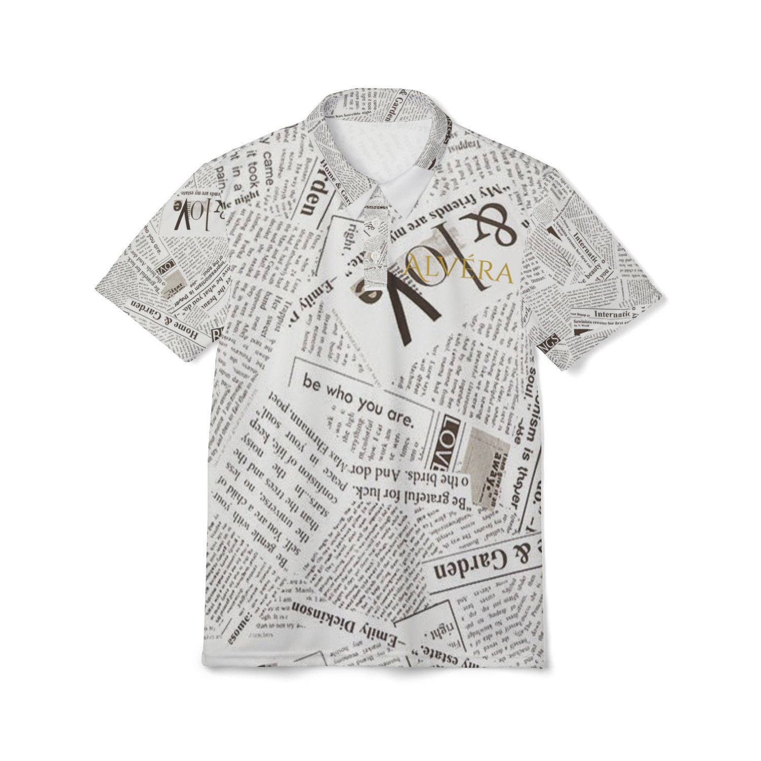 The Alvéra Presse Polo transforms the bold character of newspaper-inspired design into a refined wardrobe essential. Made from premium cotton-piqué with a smooth, breathable finish, it combines statement style with timeless tailoring. The structured collar, clean lines, and precise detailing elevate its silhouette, while the allover print adds a modern, artistic edge.