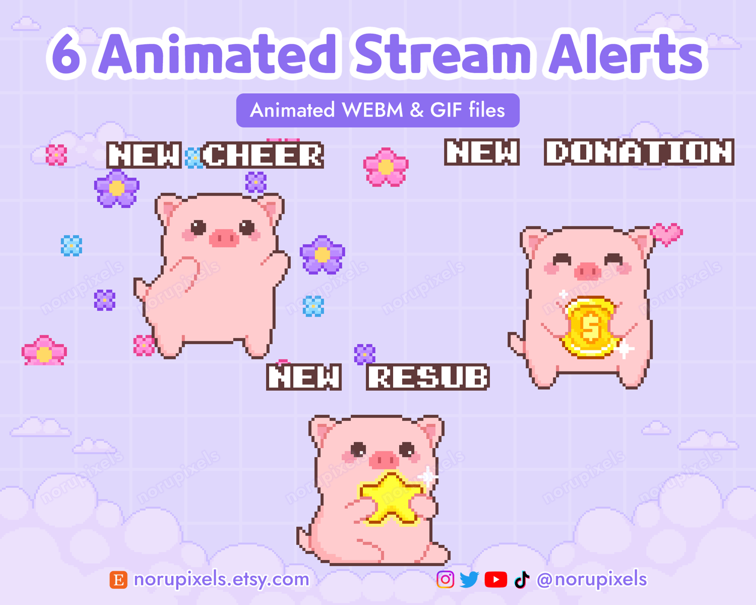 6 animated stream alerts ready to download. After purchase you will receive a .ZIP file. Unzip this to access: