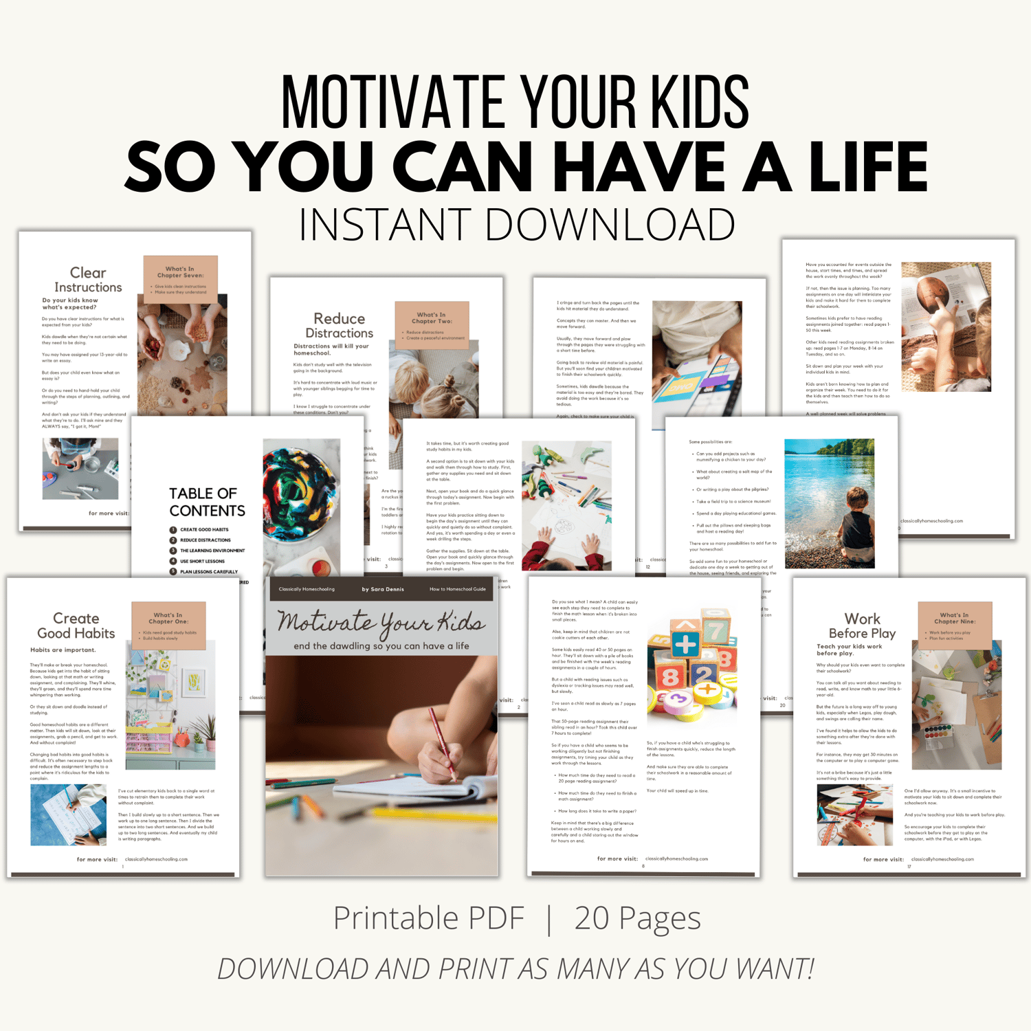 You'll get 20 pages of tips that will help you encourage your kids to develop good work habits, stop the nagging, and allow you to enjoy homeschooling!