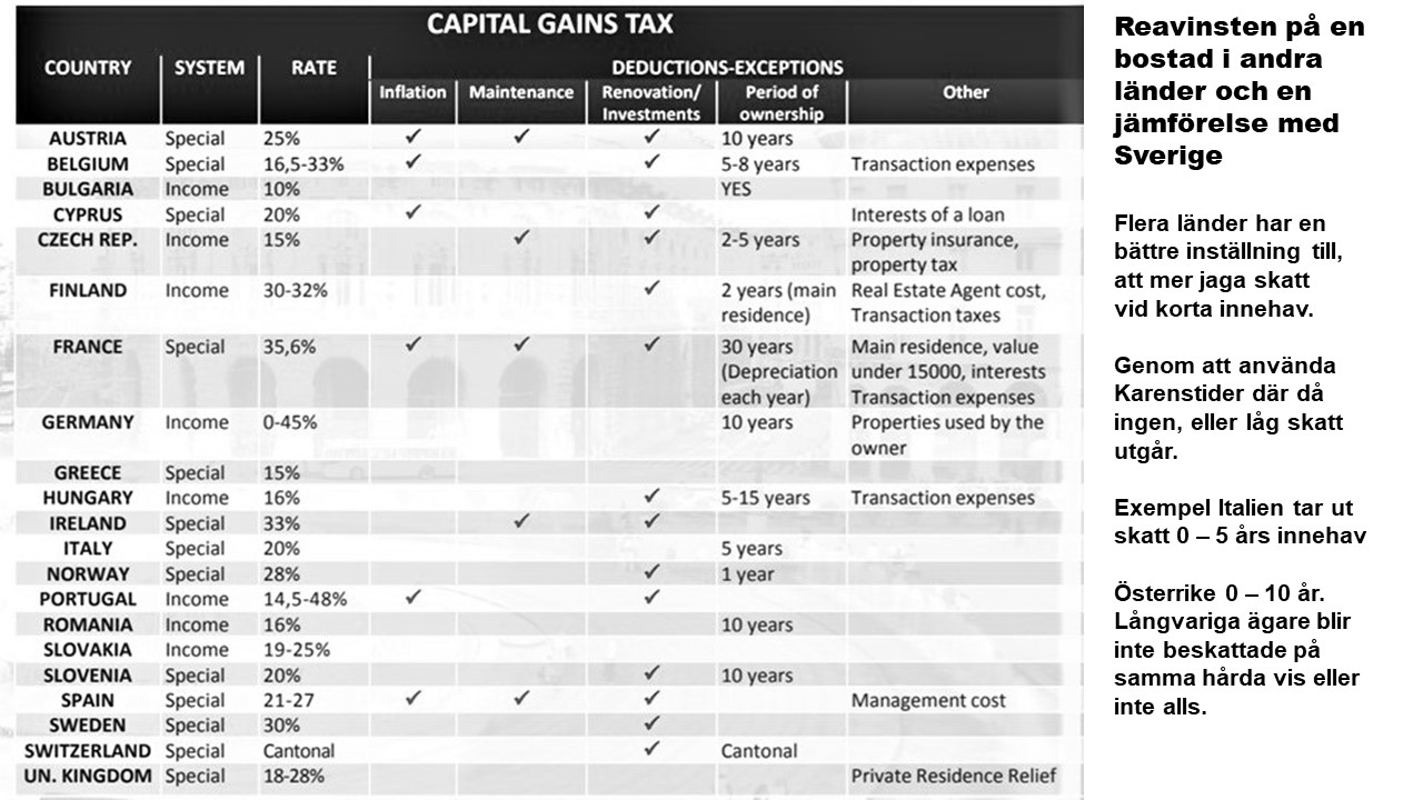 Reavinstskatt bostad Sverige och Europa (Swedish)