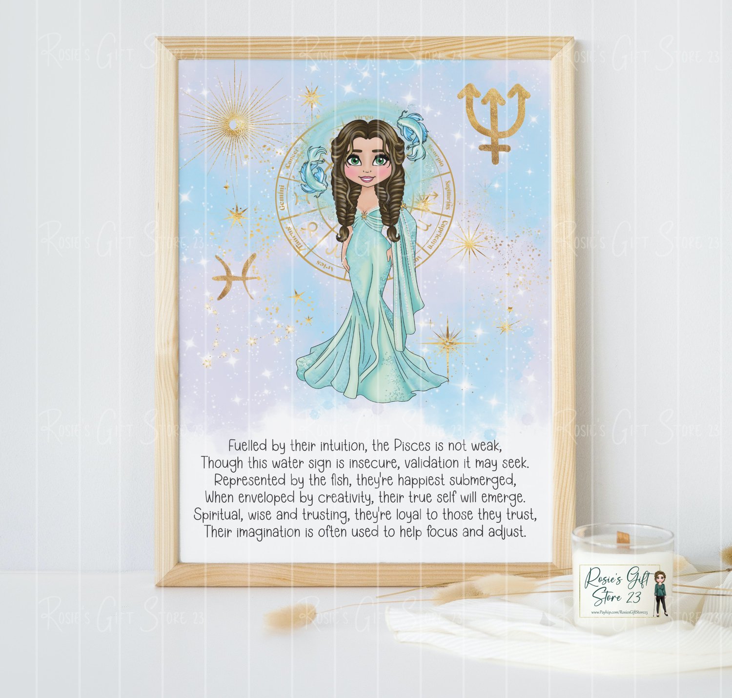 This stunning Pisces Print comes with a unique poem (Poem is under copyright, please do not use it), printed on high quality card paper (300GSM) & is available in the following