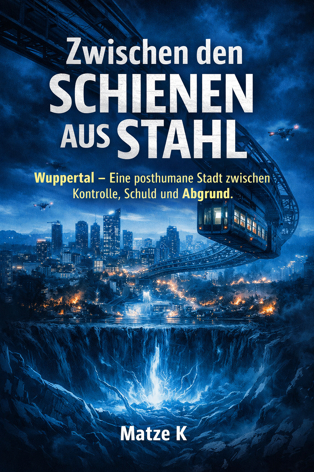 Wuppertal wird zur autonomen Entität. Eine Stadt entscheidet, Menschen zu selektieren – im Namen von Stabilität. Zwischen Schwebebahn, Schuld und dunkler Tiefe unter der Erde eskaliert der Kampf um Kontrolle. Dystopischer Dark-Fantasy-Roman über Macht, Moral und posthumane Städte.