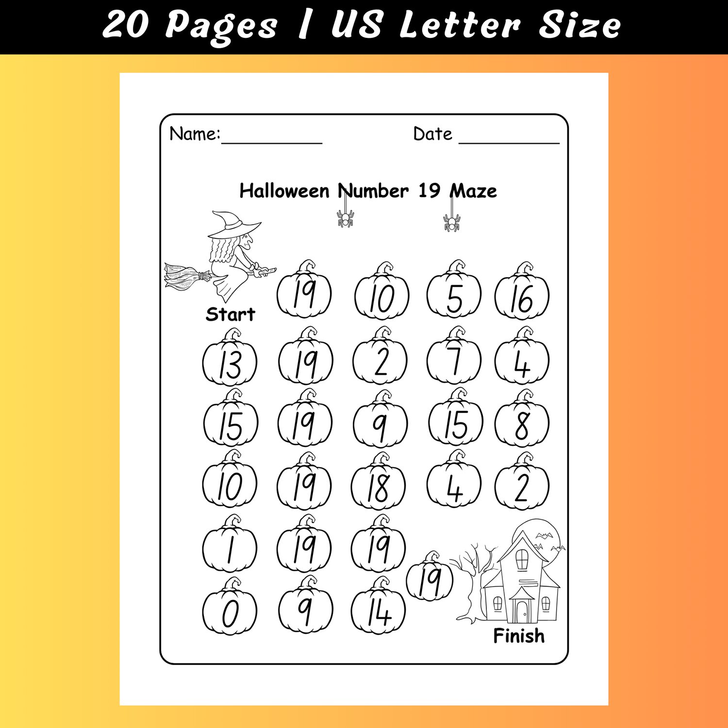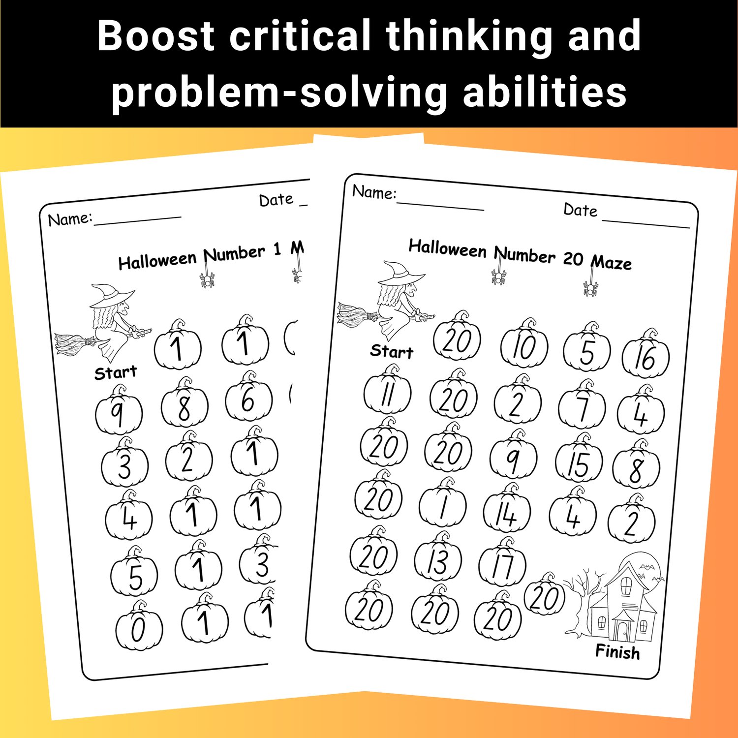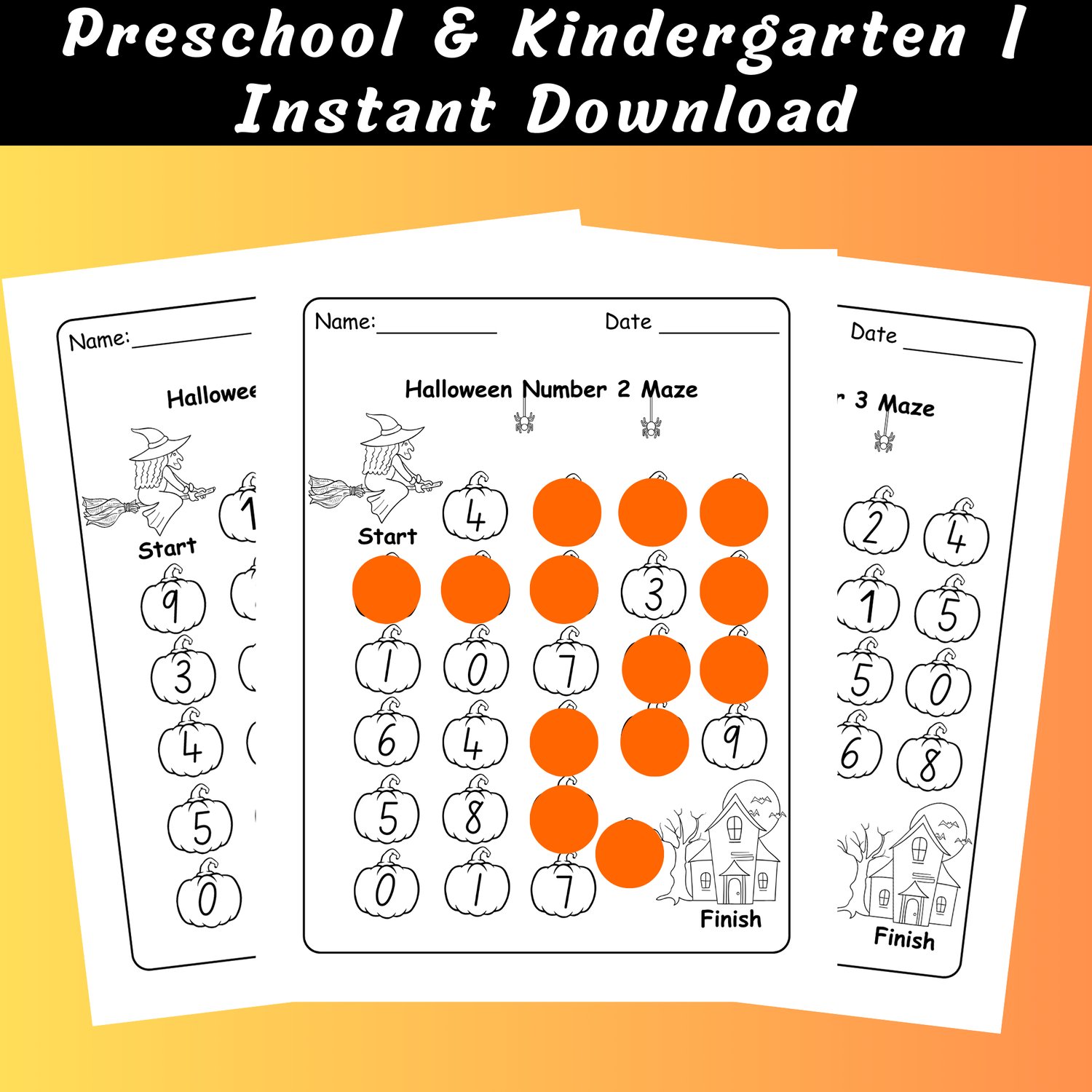 Halloween Pumpkin Number Mazes: Preschool and Kindergarten Math Worksheets (PDF)