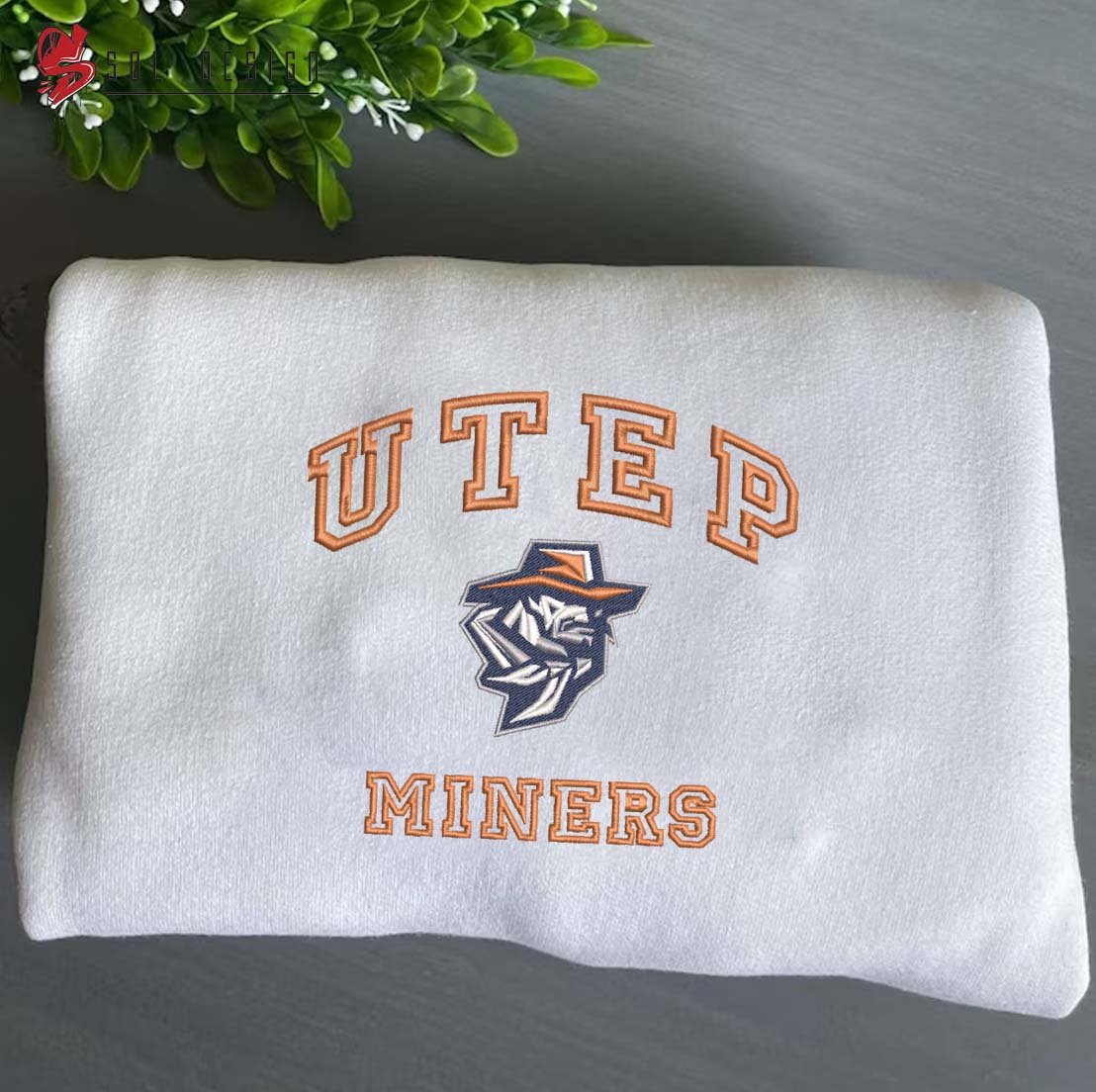 UTEP Miners NCAA College Football Team Embroidered Crewneck, UTEP College Football Embroidered Sweatshirt, NCAA UTEP Miners Team Sweatshirt, Game Day Embroidered Hoodie, T-shirt