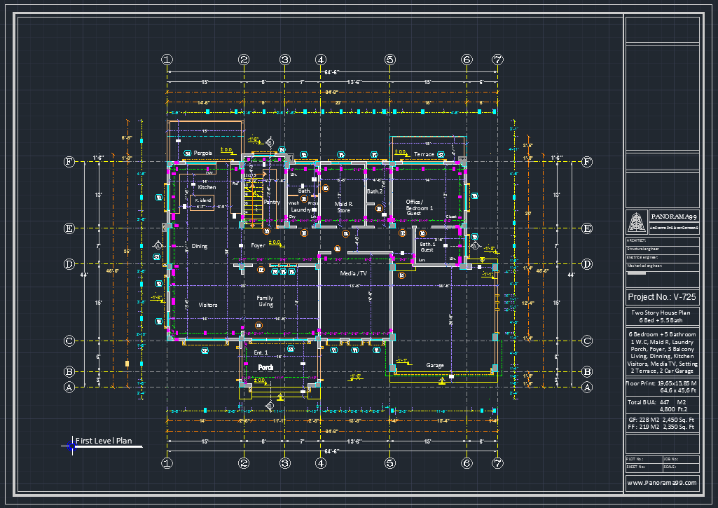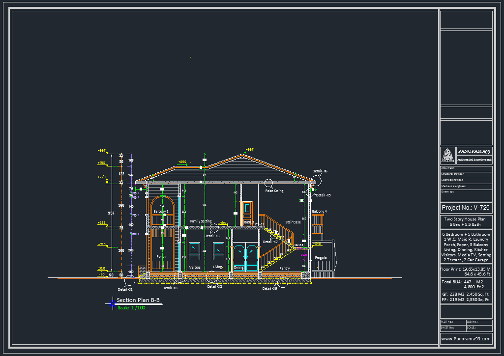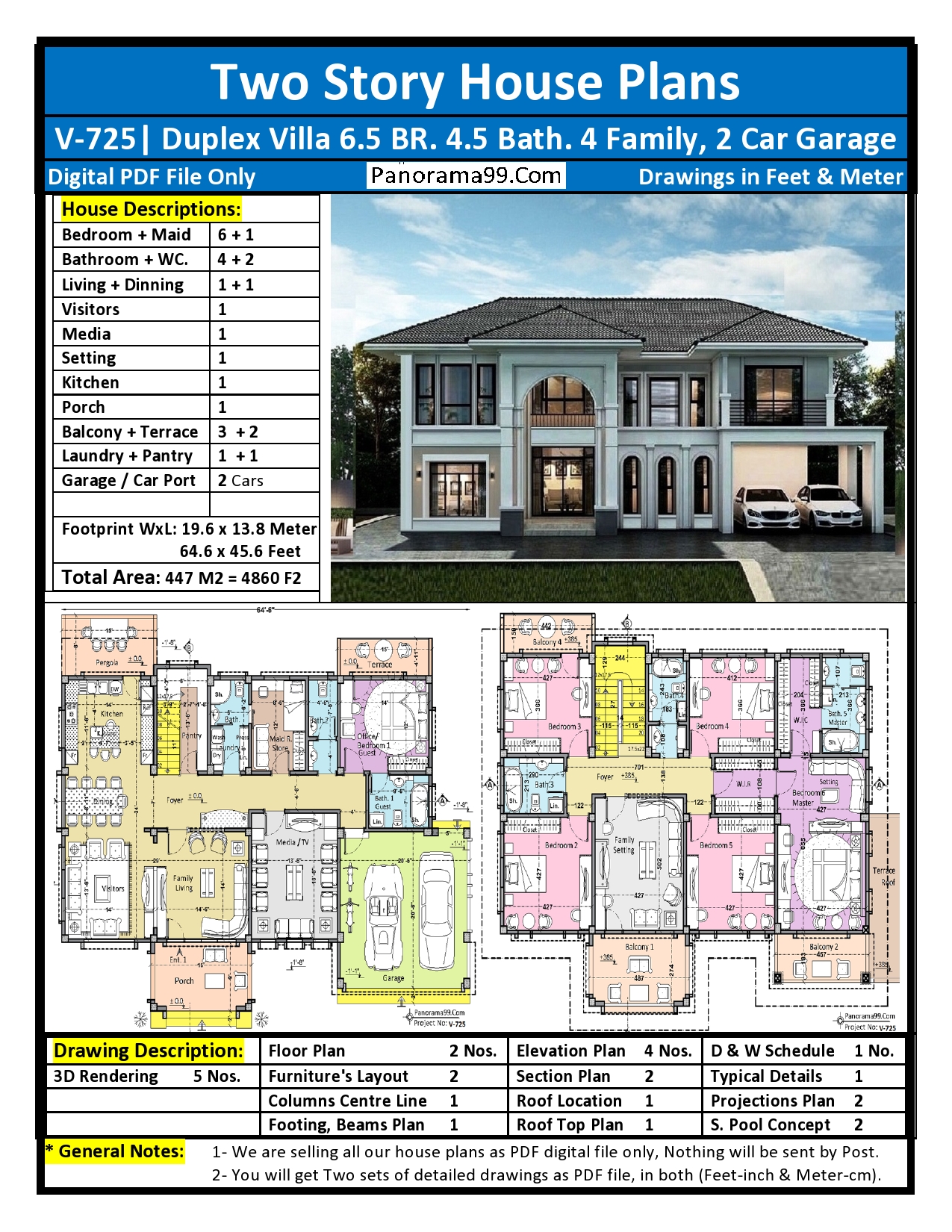V-725| 2 Two Story Modern House Plans – 6 Bedroom Home with 2 Car Garage