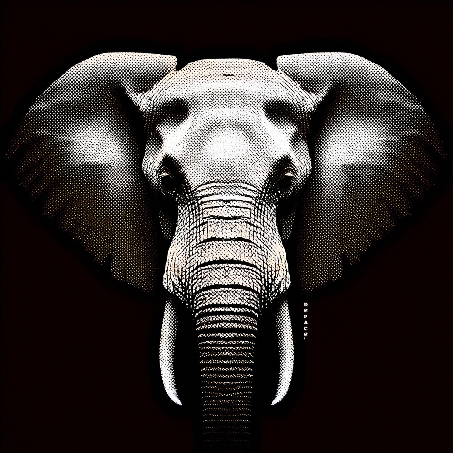 An elephant like you’ve never seen—bold, textured, and brimming with quiet wisdom. This half-tone portrait captures the gentle giant in a dance of dots and shadows, like nature’s ink sketch come to life. Perfect for lovers of wildlife, vintage vibes, and quirky wall statements. Let this noble beast stomp gently into your space with charm and grace.