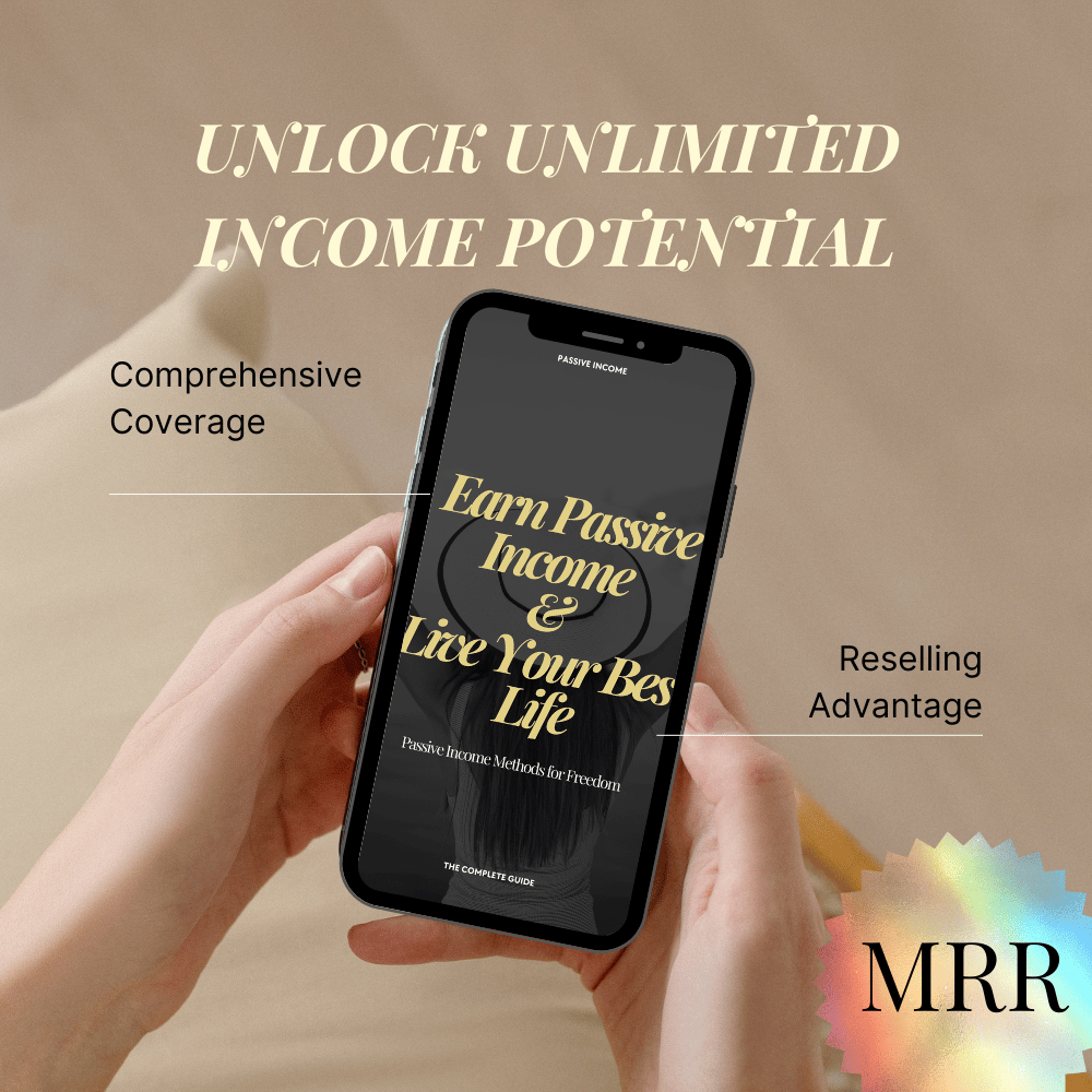 - Master Reselling Rights: Not only will you learn how to earn passive income, but you'll also have the exclusive opportunity to rebrand and resell this ebook with full Master Reselling Rights. This means you can keep 100% of the profits while helping others achieve their financial goals.