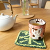 This Amimoji design will produce a reversible knitted coaster using a Japanese Kanji character, Cha (茶), meaning Tea.