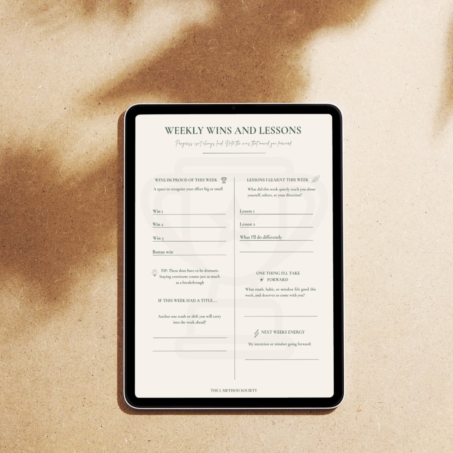 This guided tool helps you pause each week to recognise your wins — big or small. By reflecting on what’s working, you build momentum, confidence, and motivation for the week ahead.