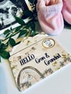 Baby announcement letter with scan photo space and space to personalise with baby name and arrival month/date, to fit the blank full letters from Woodform Crafts.