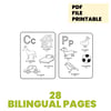 You can choose from 28 bilingual pages with words in spanish and english or 28 pages with letter and just images.