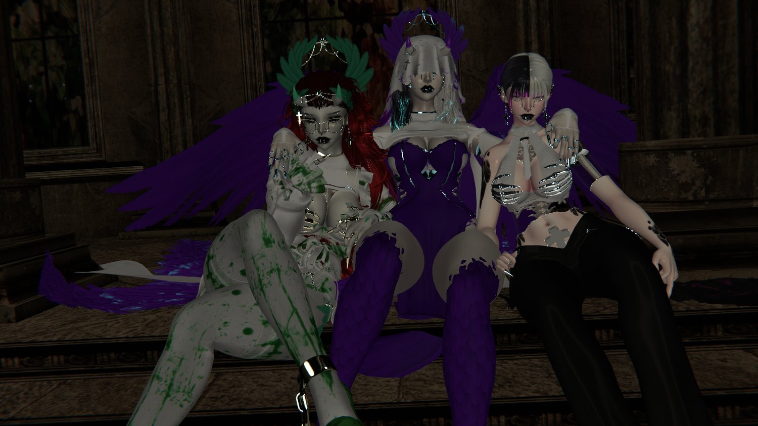 - Clothes: Fear by Nessy, DON'T HURT ME and DARK AURA by Cringy, Self Serving Leather Pants by TheThiccWitch, Gothic Rave Outfit by winxie, Saintly Outfit by HeyItsChin, Dress Tie by desipooh