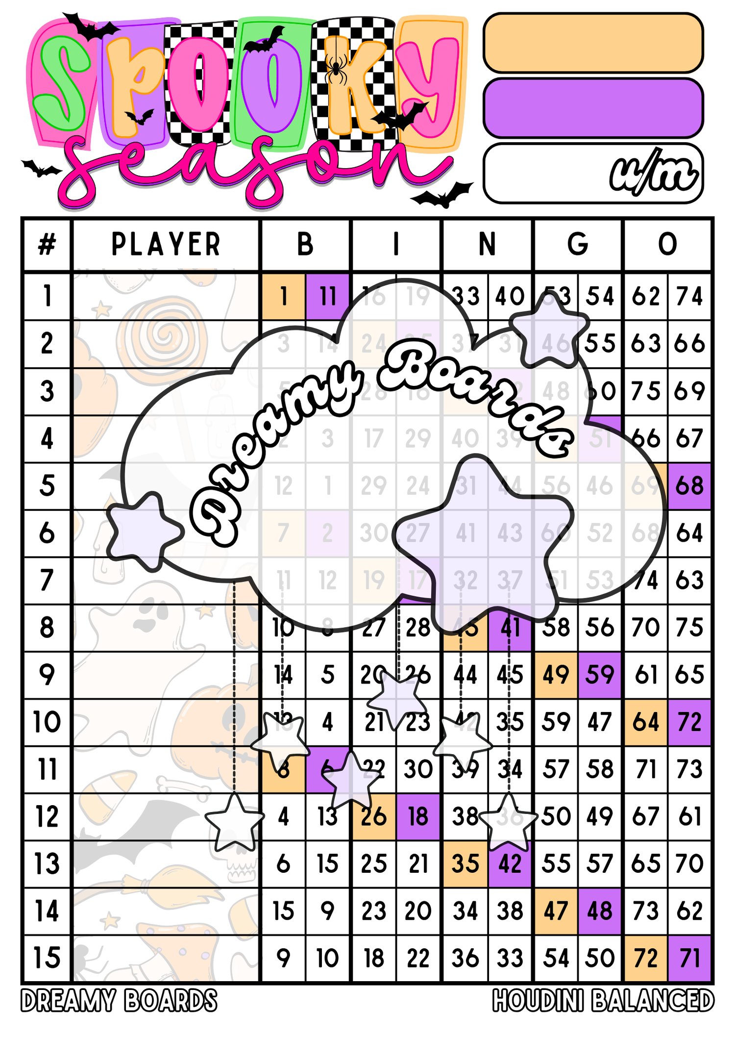Printable bingo board.