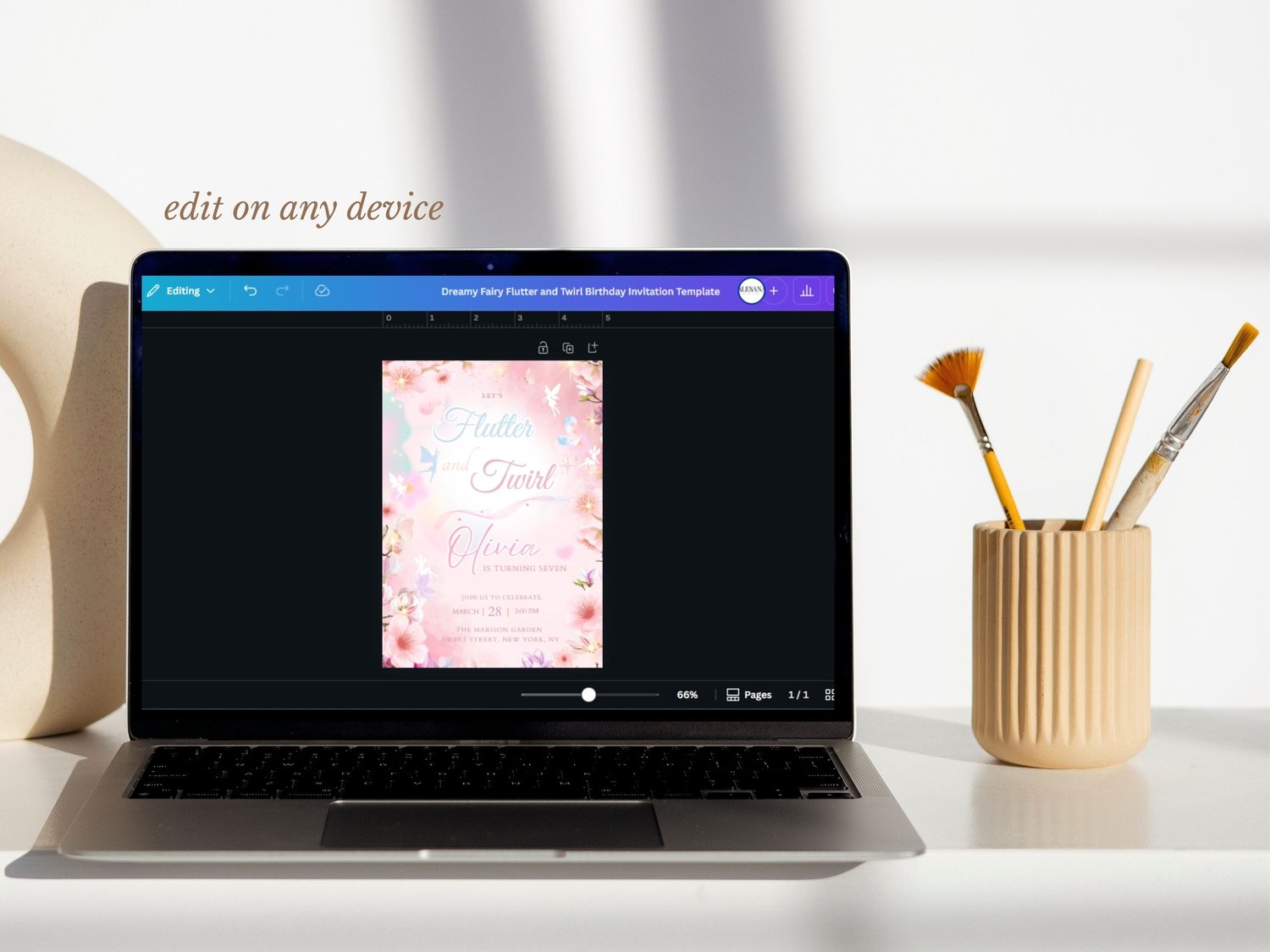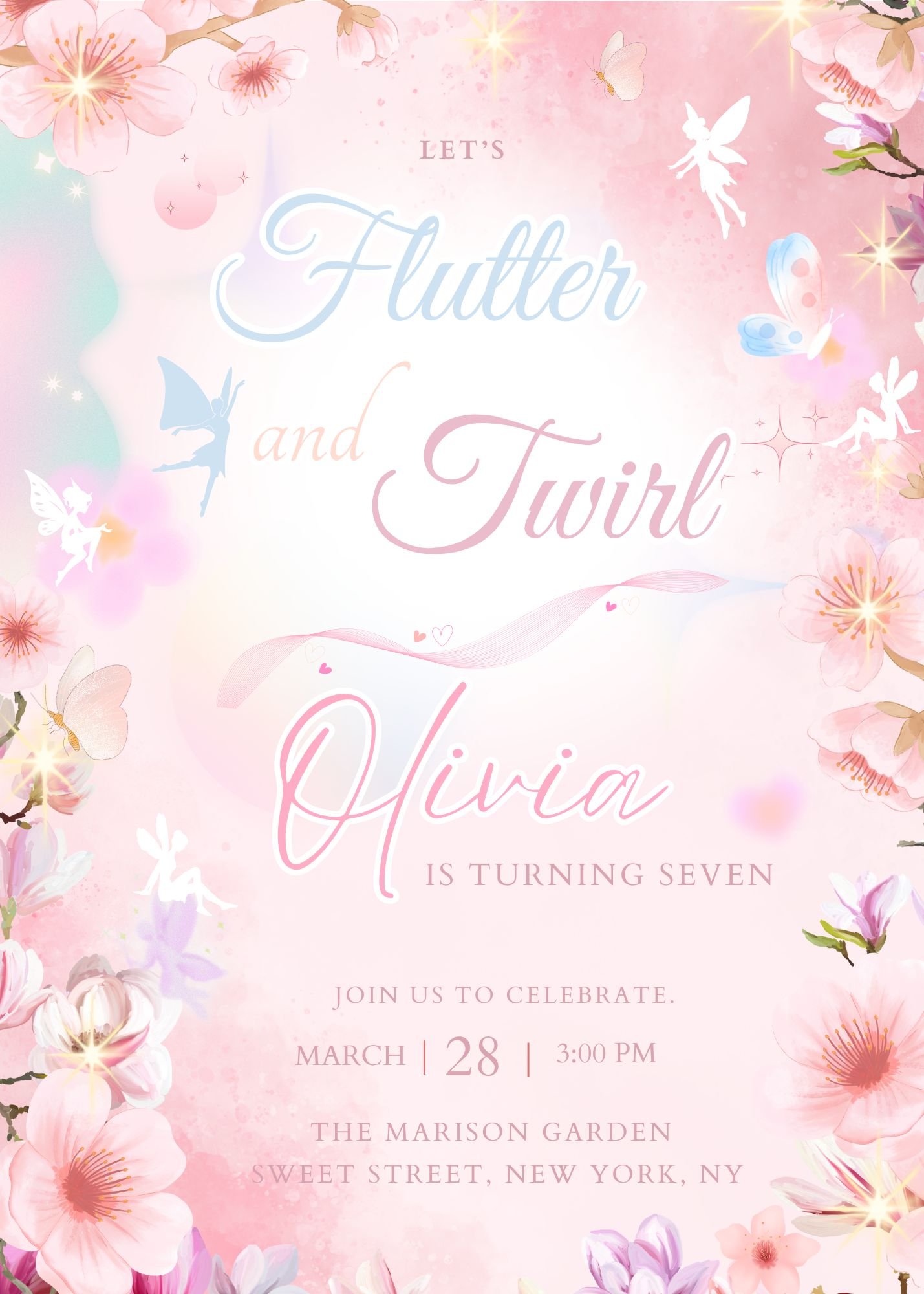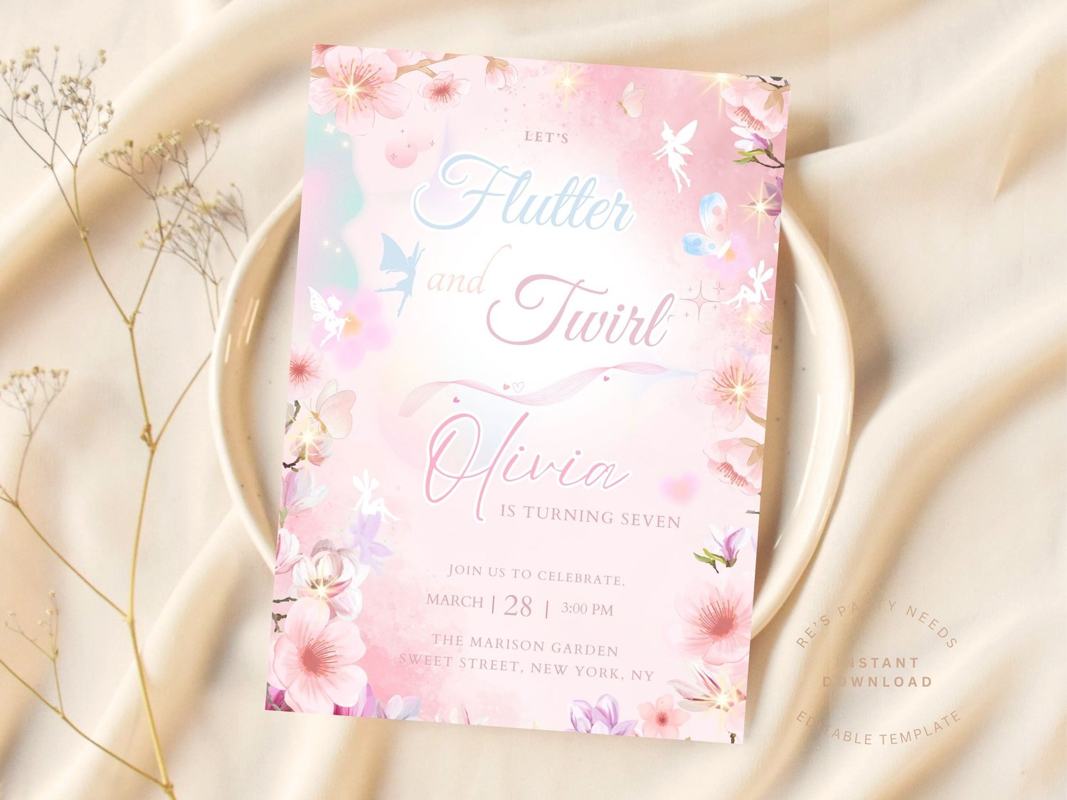 Any Age Dreamy Fairy Birthday Invitation Template, Pink Fairy Invite Template, Printable Fairy Invitation, Cute Fairy Canva Template, Instant Download Editable Template Digital File
