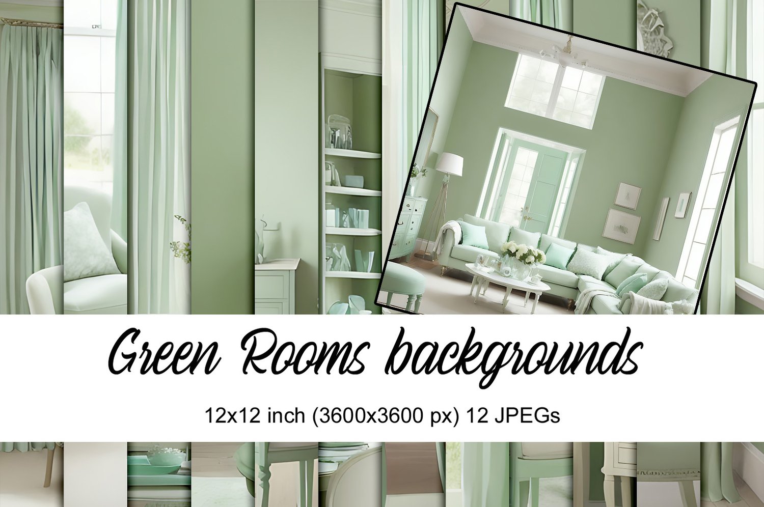Green rooms backgrounds is collection of 12 digital papers. Each paper is in size 3600 x 3600 pixels (or 12×12 inches).