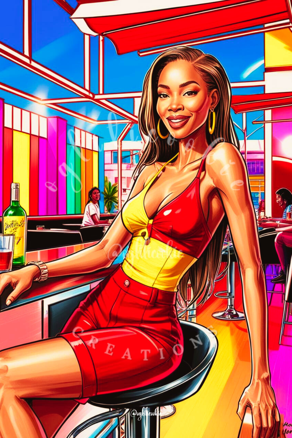 Get 29 high-quality PNG illustrations of a stylish Gen Z/Millennial woman with long hair, rocking vibrant yellow and red hip fashion.
