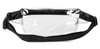 Clear polyester strap. Trim zippered main compartment. Adjustible waist strap with buckle. Black corded zipper pulls.