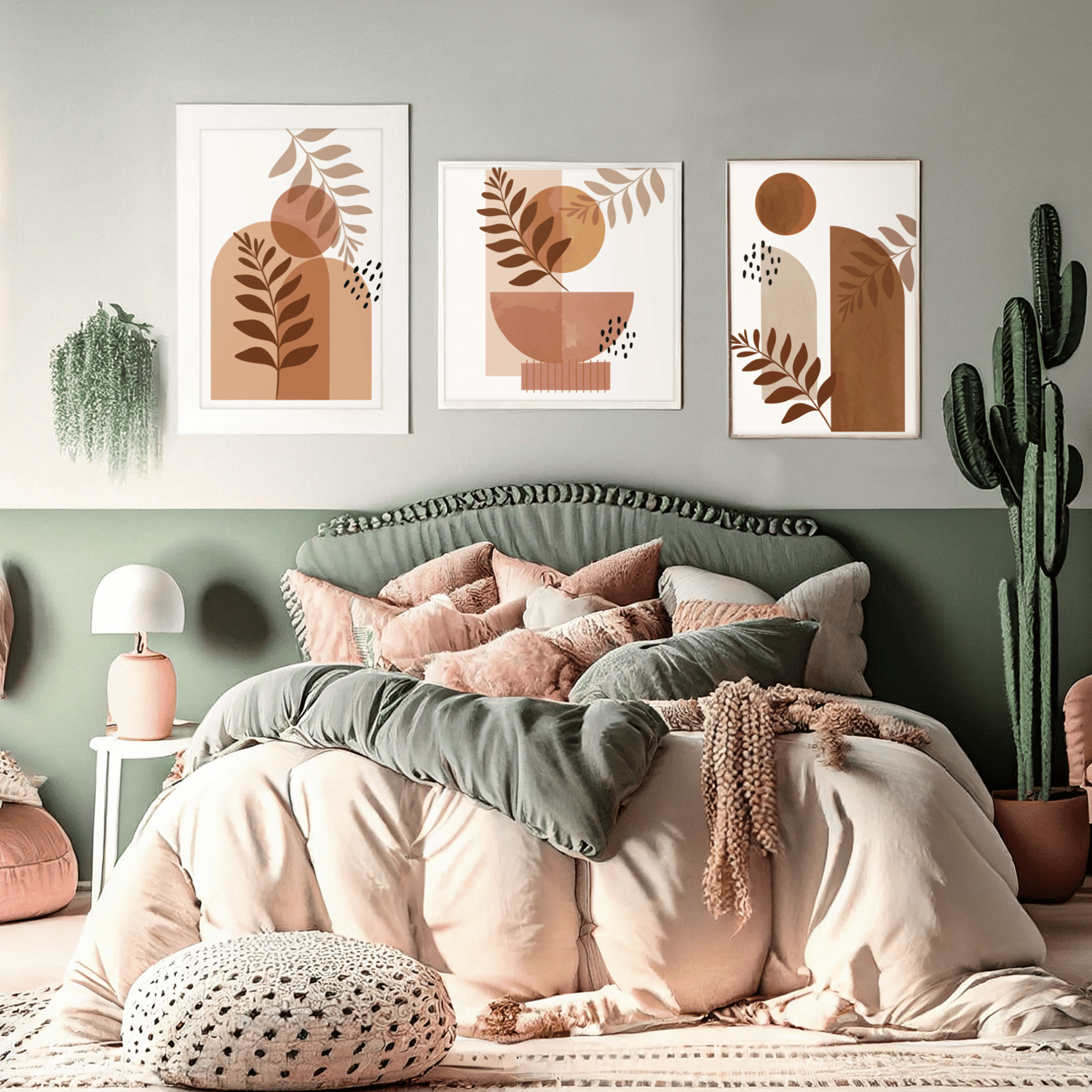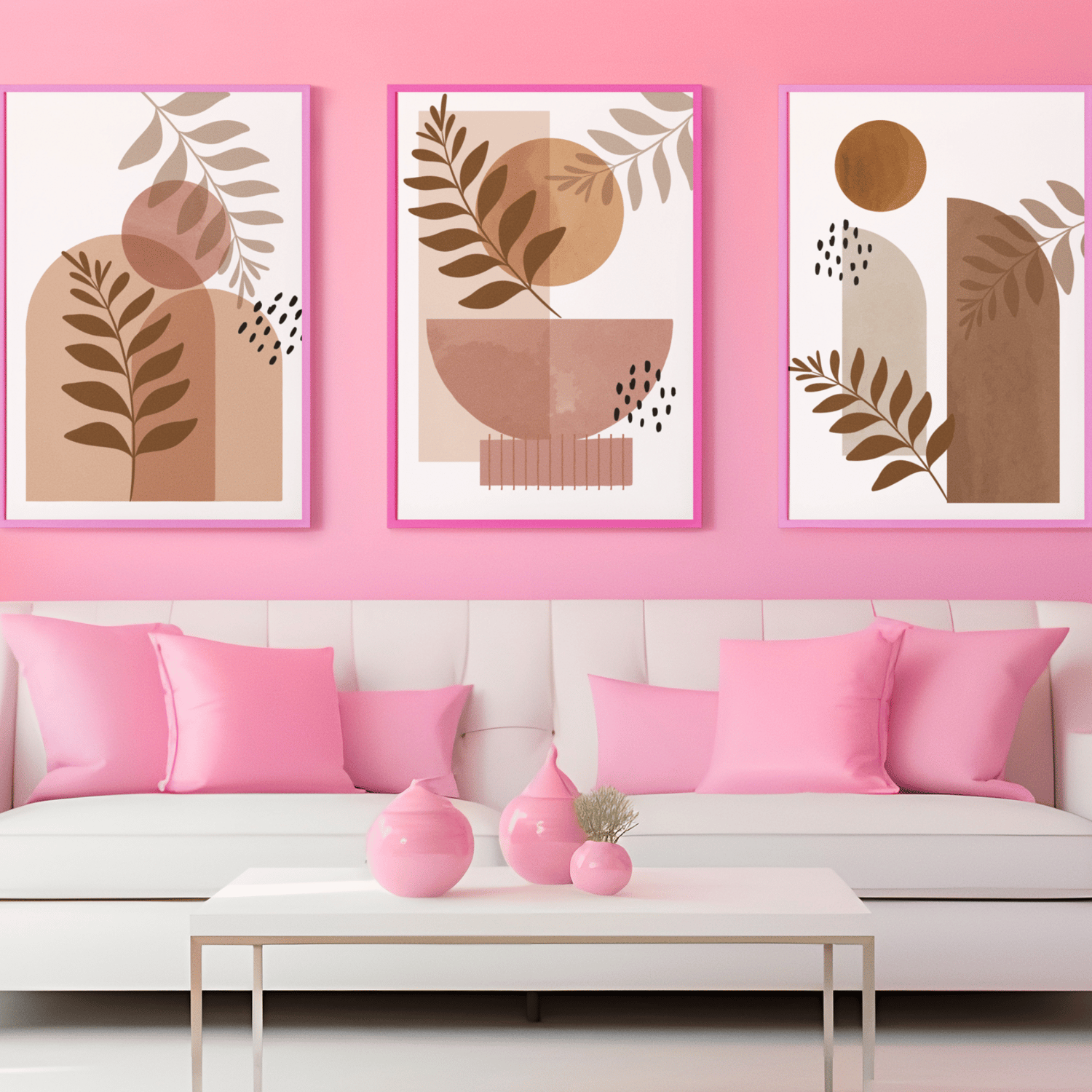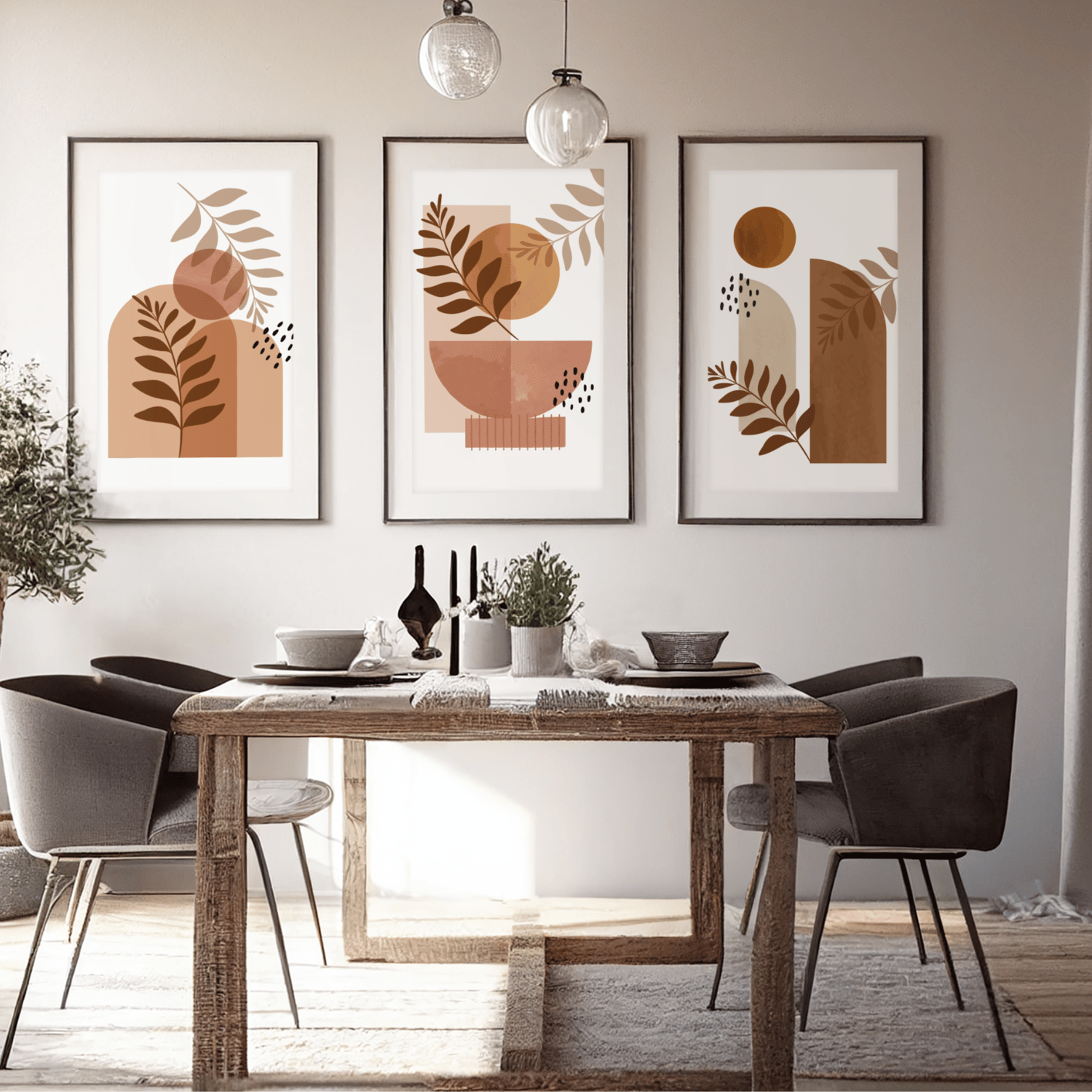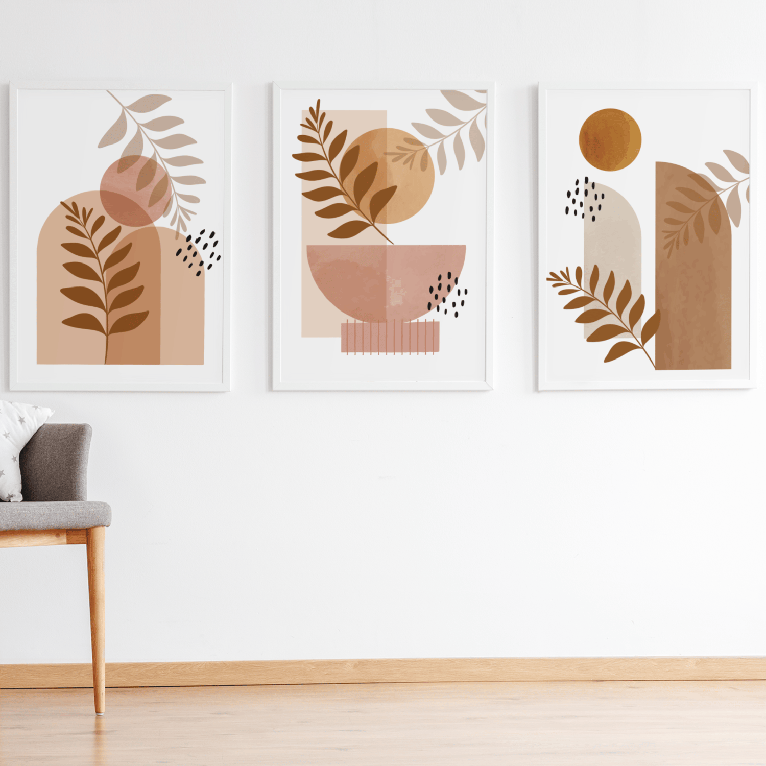 Featuring minimalist leaves, organic shapes, and neutral earth tones, this printable set is perfect for living rooms, bedrooms, apartments, offices, and modern homes.