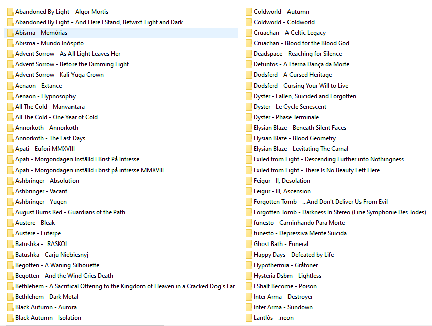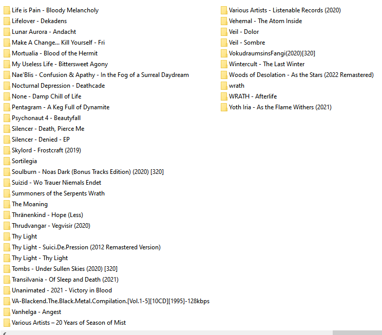 Está una compilación 100 álbums de música black metal, que cuenta con una gran variedad de agrupaciones; contando con 883 canciones.