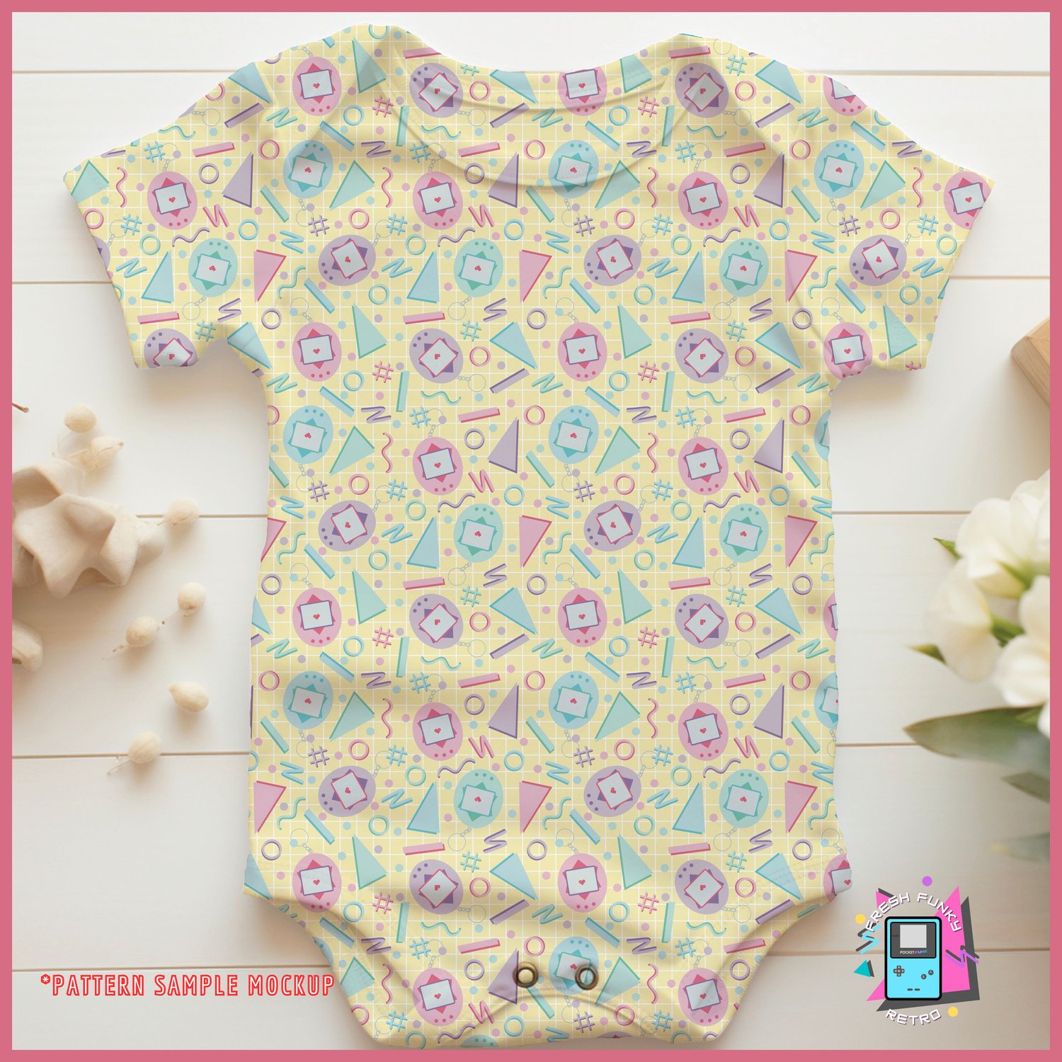 With bright pastels and playful retro 90’s vibes, this Tamagotchi-themed pattern is a nostalgic callback to your favorite pixel pets!