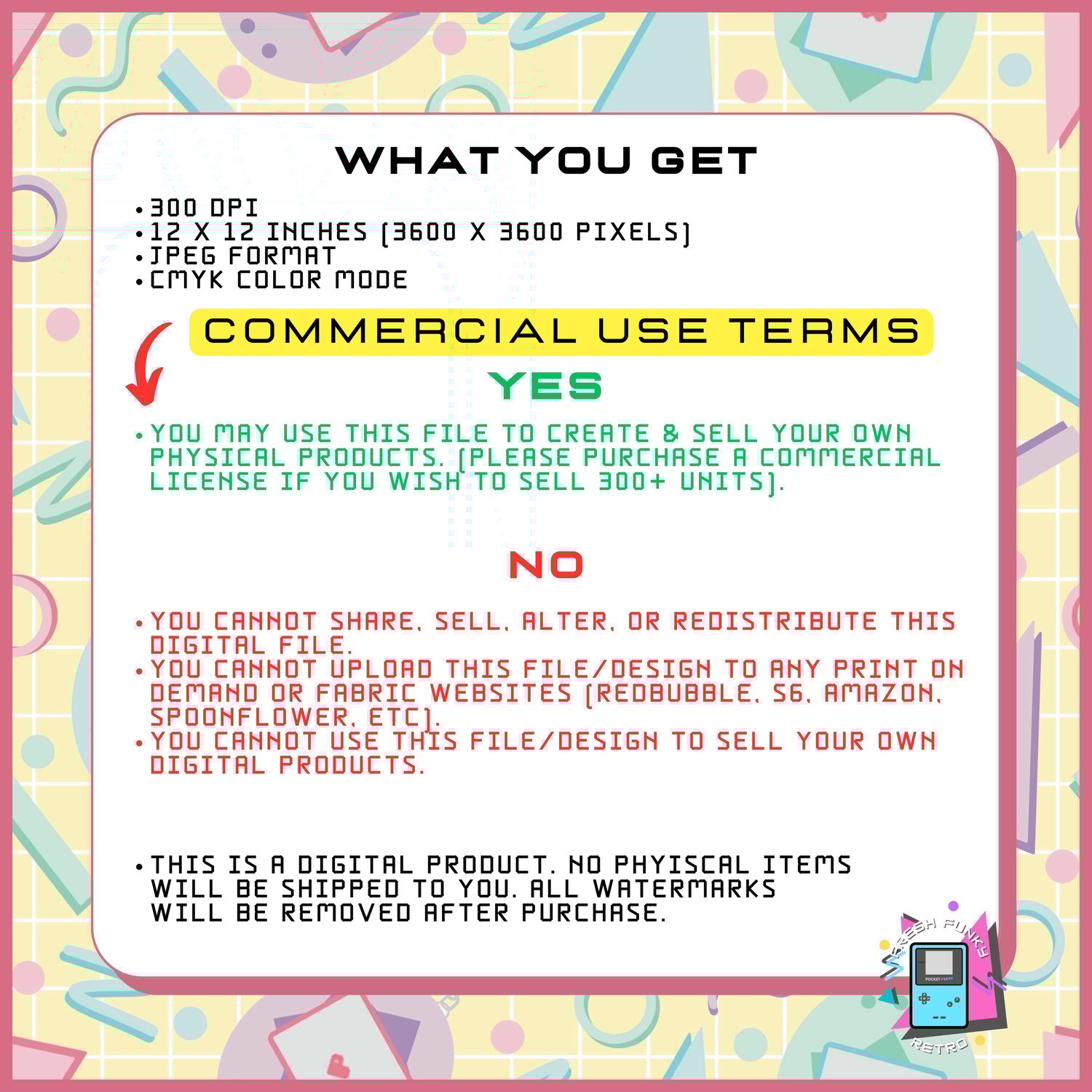 - You cannot upload this file/design to any print on demand or fabric websites (Redbubble, S6, Amazon, Spoonflower, etc).