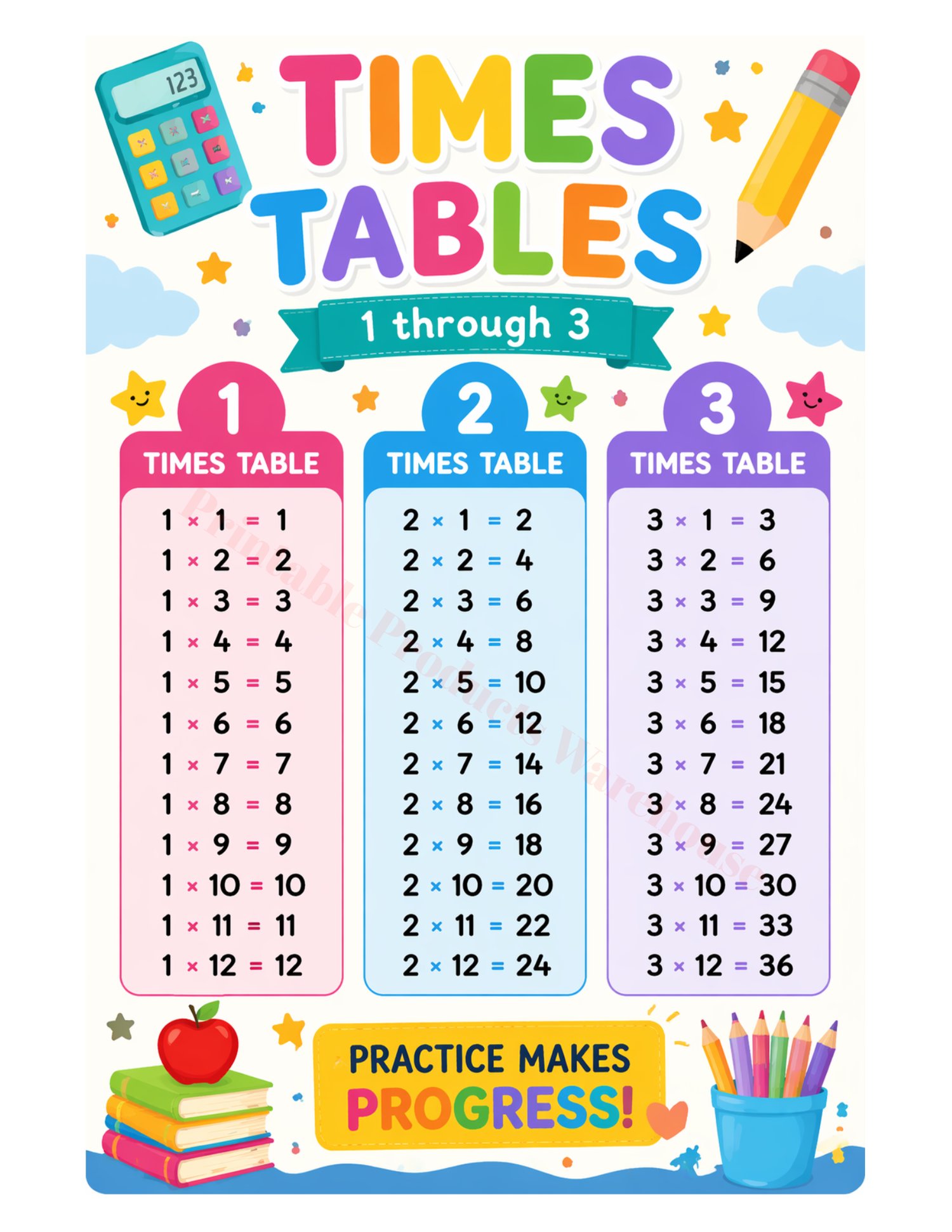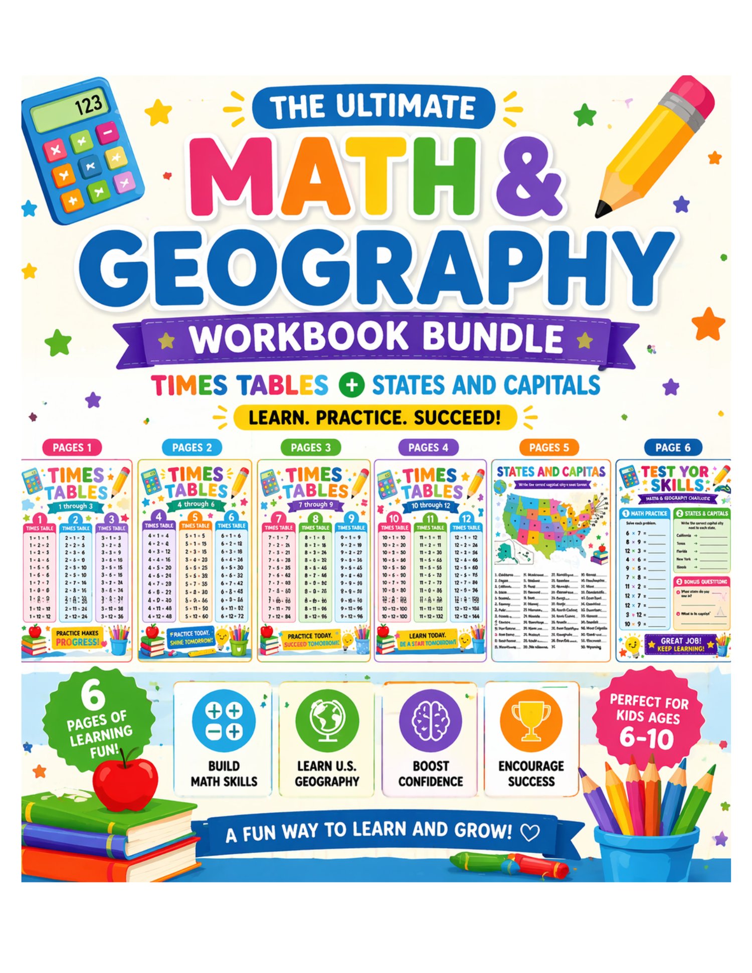 Kids Learning Workbook Bundle: Times Tables + States & Capitals (Printable PDF)