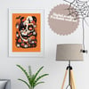 A digital file for printing; Abstract night dream in halloween. Funny art halloween theme. wall art funny for october party. Printable invitation.