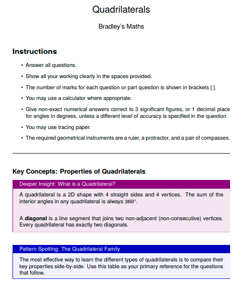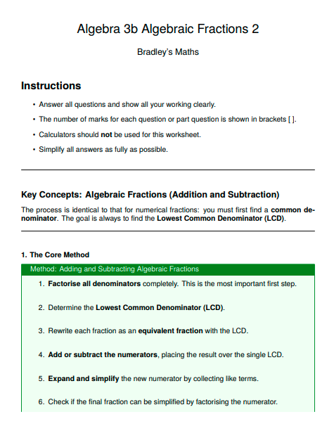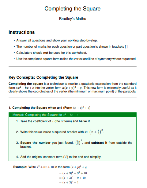 - Key Concepts: The opening section of the worksheet tells you what the worksheet contains and how to answer the questions with fully worked methods, deeper insights, pro-tips and how to avoid the typical student errors.