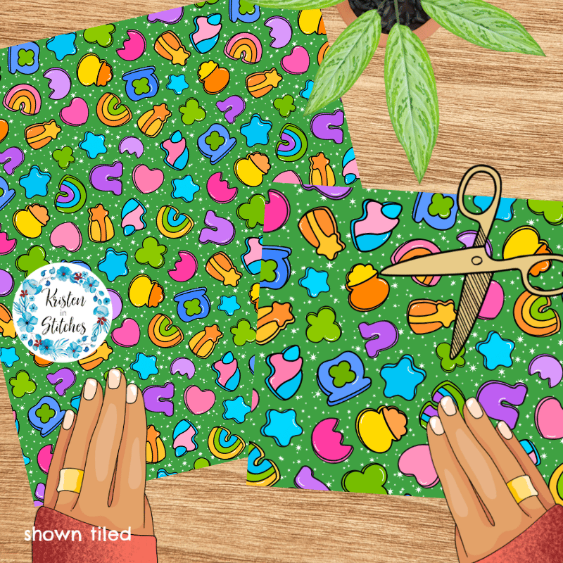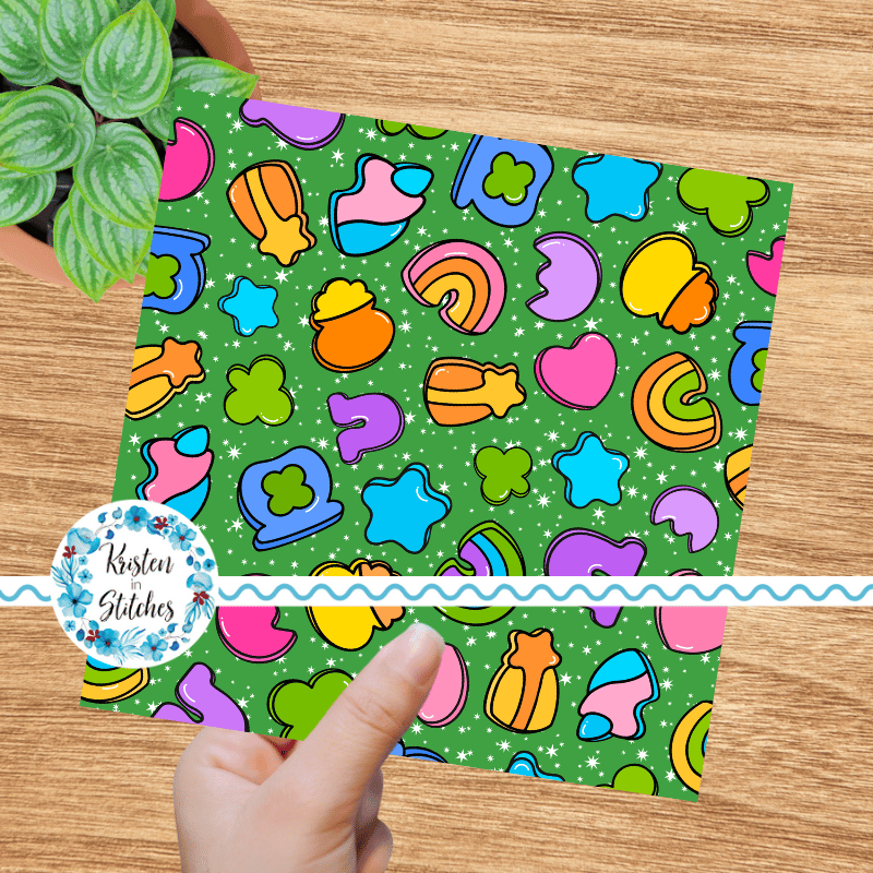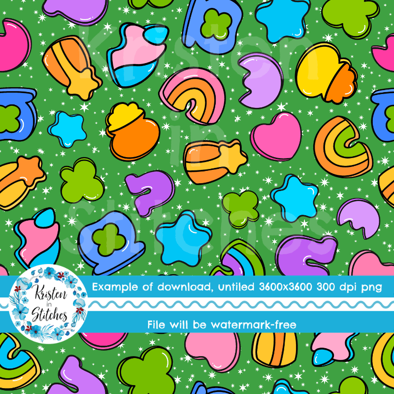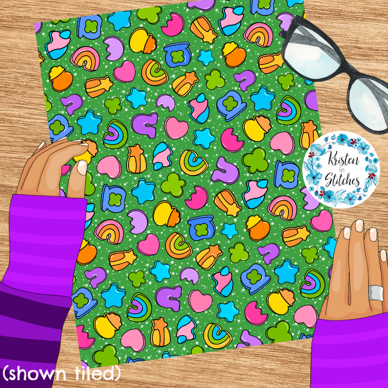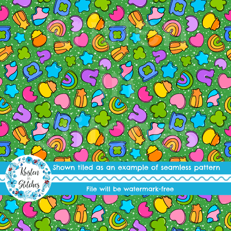 Lucky Charms Seamless Pattern, Saint Patrick's Day Good Luck Shamrocks and Rainbows