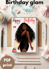 Glam Birthday Queen Card - Black Girl Magic Birthday Greeting Card Digital Download