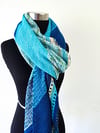 Mixology ist eine asymmetrische Stola in Parallelogrammform, die in fünf verschiedenen Farben gestrickt wird.