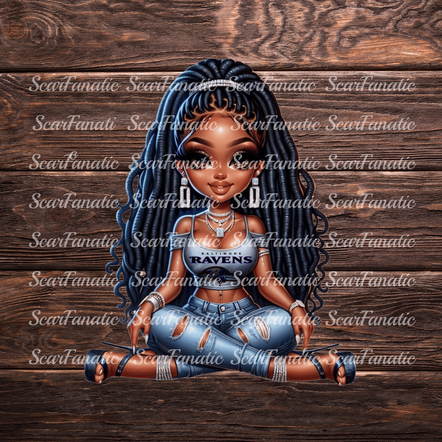 Baltimore Football Girl in Jeans and High Heels Sublimation, PNG, DTF, 300DPI, high resolution